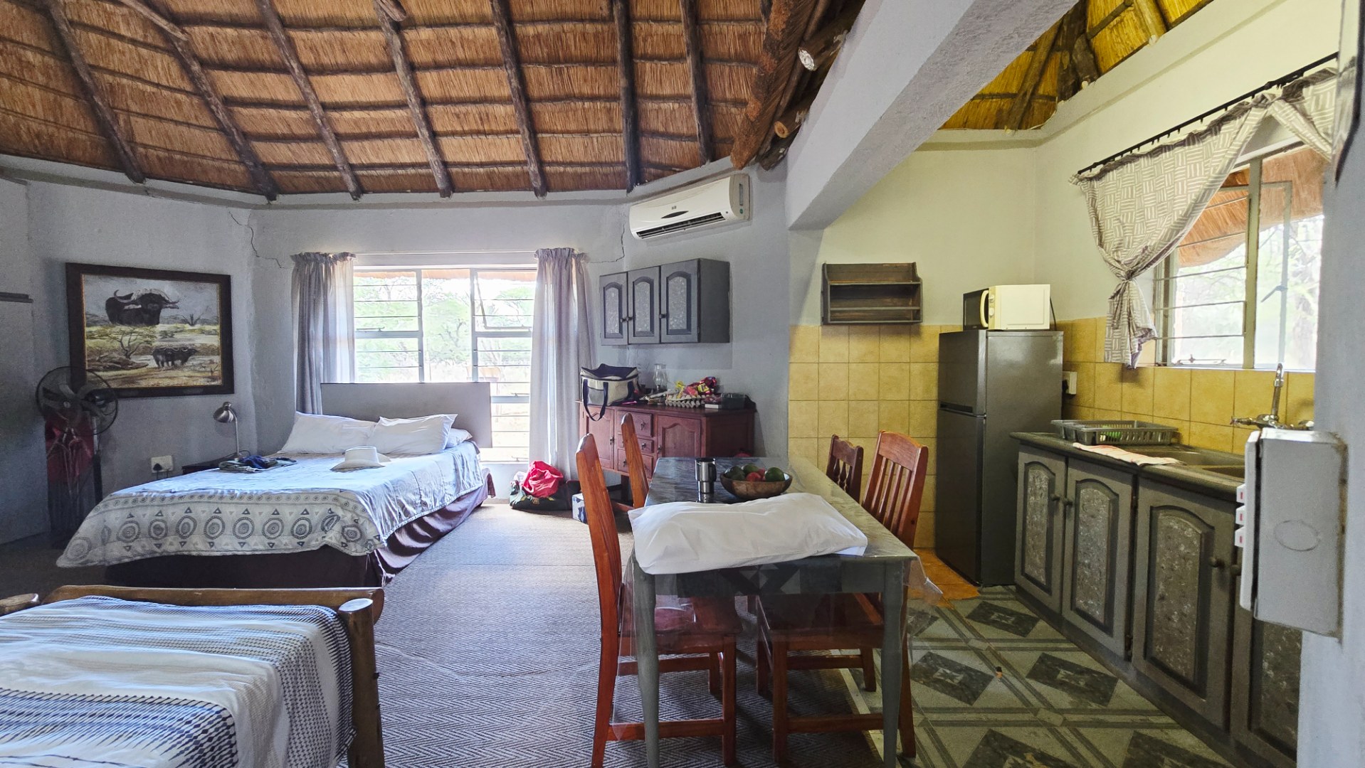 There are quite a number of accommodation facilities which consist of a main house with two bedrooms and two bathrooms, open plan dining, lounge and kitchen area and garage. Swimming pool, Lapa and bar also acting as reception area and 15 chalets in total.
