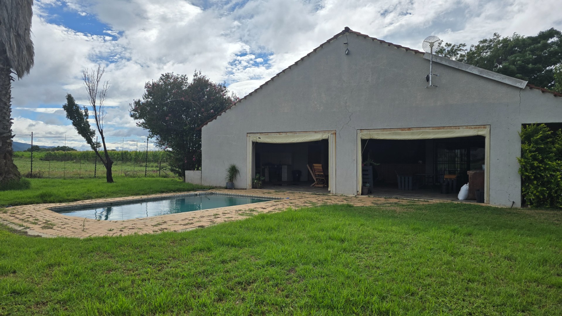 Further improvements include a 5 bedroomed house with three bathrooms, 2 of which are en-suite, kitchen, open plan dining and living area, verandah with built-in barbeque, swimming pool, three sheds and storerooms.