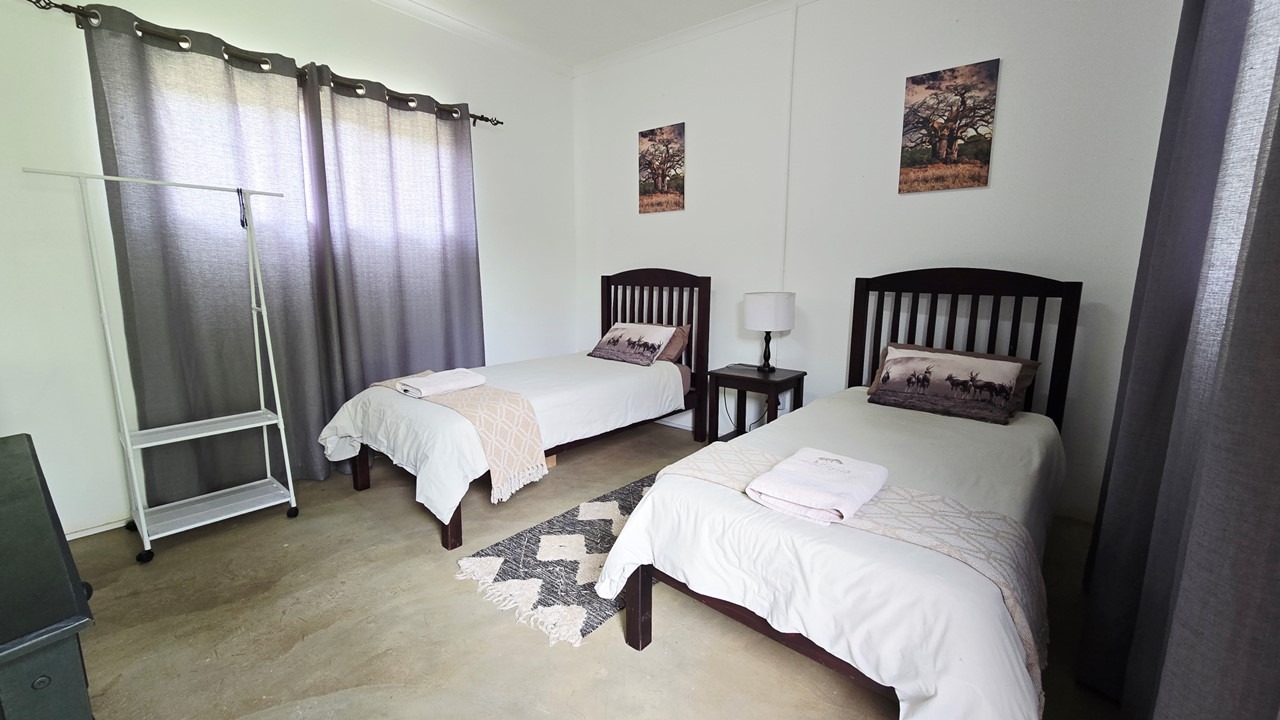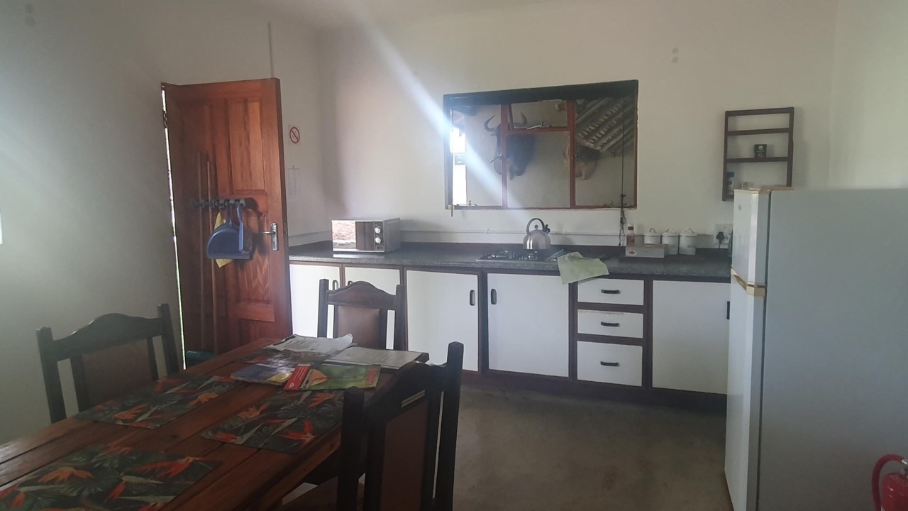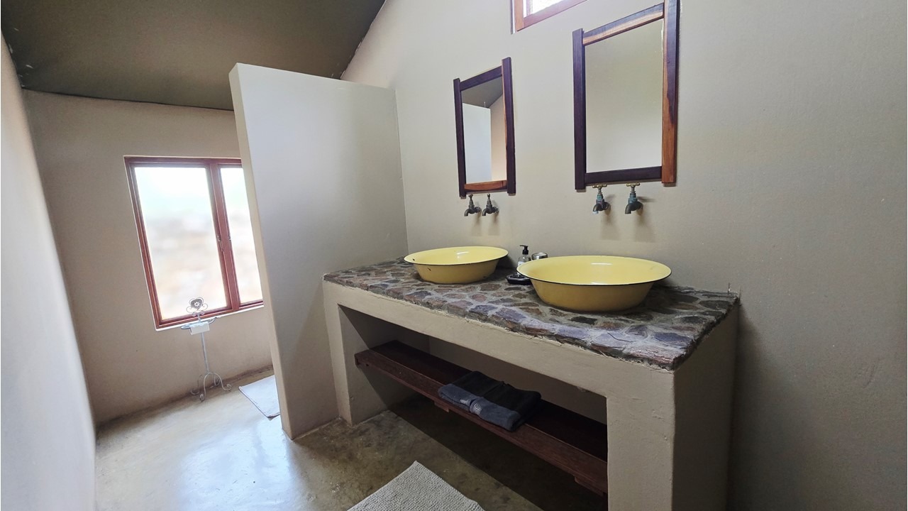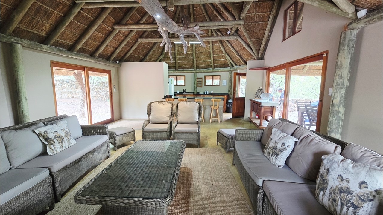 The main lodge is being utilized as a fully catered lodge and consist of a recreation/dining/lounge area, fully equipped industrial kitchen, awesome patio with bar boasting a lovely view over a watering point, natural stream and a soil dam, 2 comfortable en-suite chalets and 4 luxury, en-suite safari tent chalets, additional and separate ablution facilities and a swimming pool. All walkways between the main area and chalets are expertly done with stone which enhances the natural ambience of the lodge, complimented by a braai-boma and fire pit. A back-up generator supply power to the whole farm and all lodges/hunting camps if need be. This main lodge offers Wi-Fi access as well.