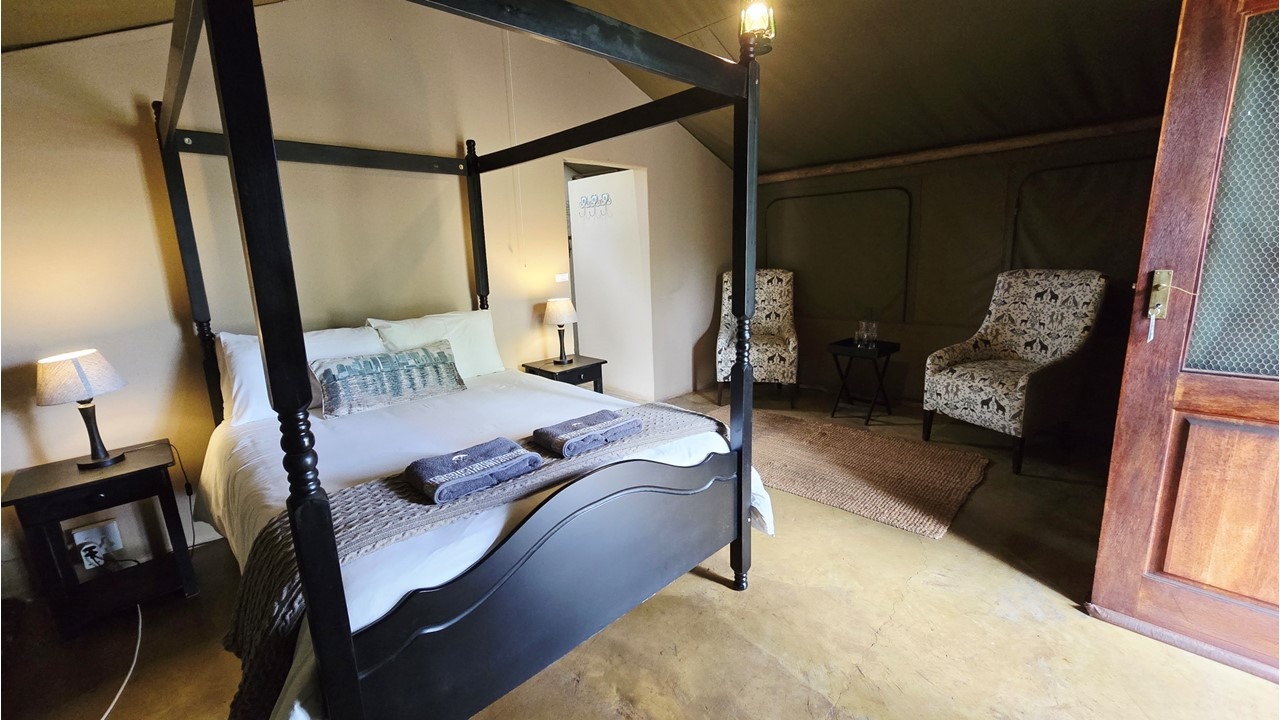 The first self-catering hunting camp offers 4 luxury safari tent chalets each with their own patio, a communal kitchen, ablution facilities, bar and boma area. The second hunting camp include six bedrooms, kitchen, bar and boma area.