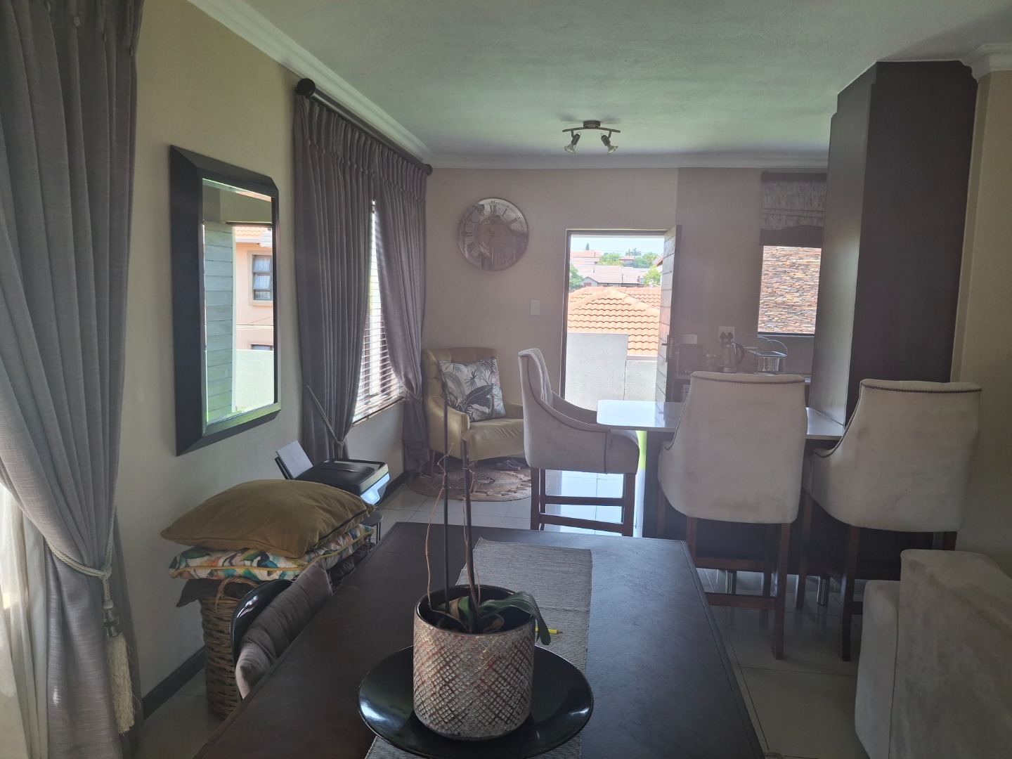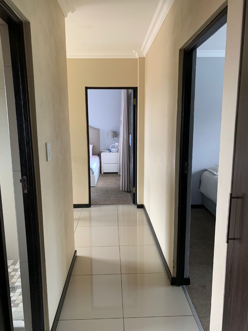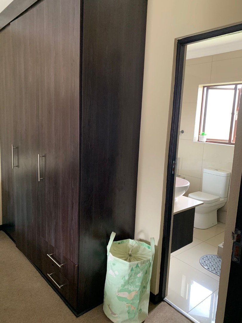 Discover this inviting 3-bedroom, 3-bathroom rental home situated within a secure estate in Amberfield Valley, Centurion. Boasting a generous 160 sqm floor size on a 1000 sqm erf, this residence offers a comfortable and modern living experience. The open-plan layout seamlessly connects the lounge and dining areas, featuring clean tiled flooring, neutral wall colours, and elegant crown molding, creating a bright and welcoming atmosphere. Natural light floods the living spaces, enhancing the contemporary aesthetic.