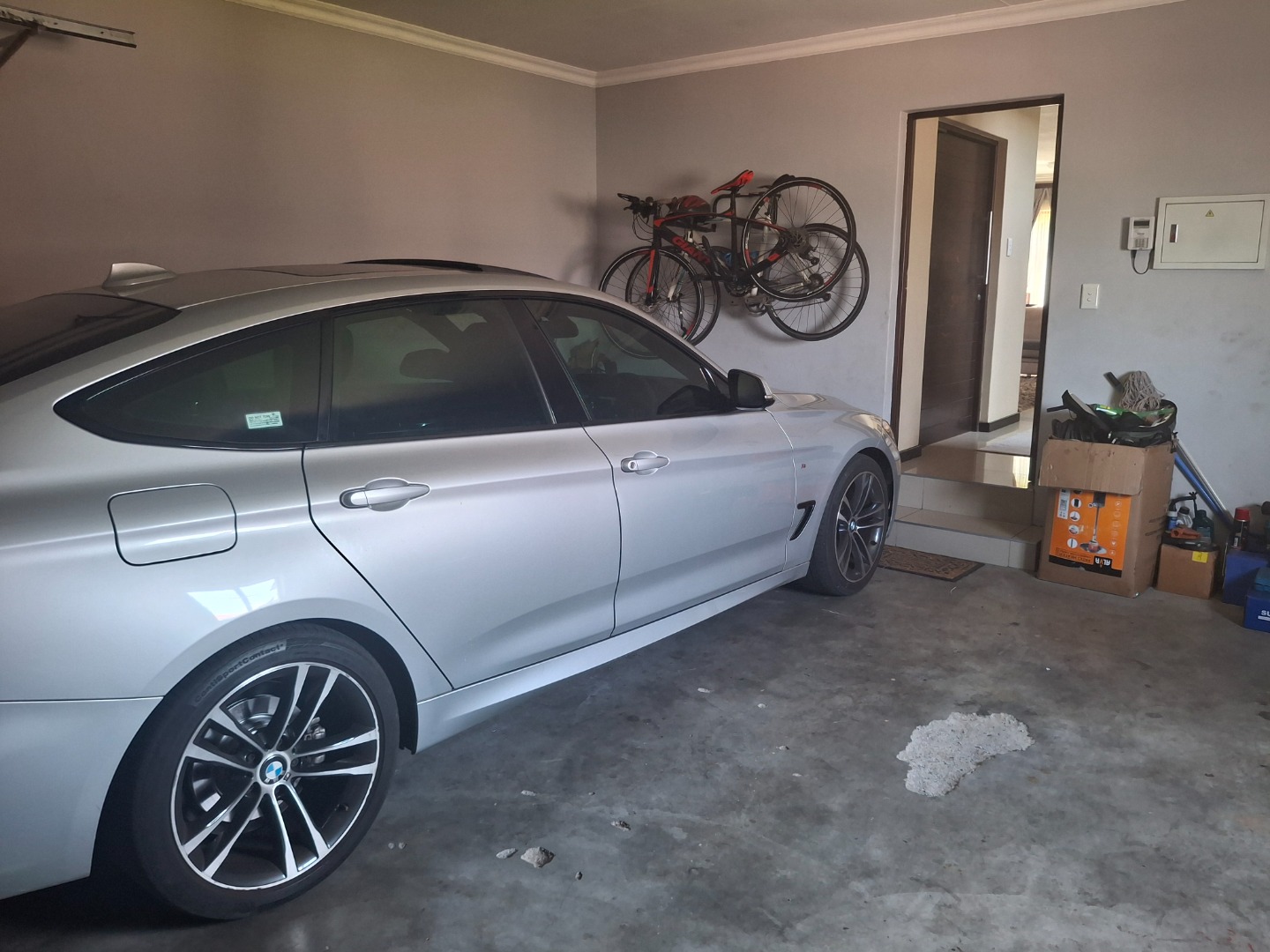 Designed for a convenient lifestyle, the property features a private garden and a patio, perfect for outdoor relaxation and entertaining. Pets are allowed, making it an ideal choice for animal lovers. Parking is well-catered for with a double garage and additional parking space. The attached garage includes modern dark wood doors and a ceiling fan for ventilation. Fibre connectivity is available, ensuring high-speed internet access.