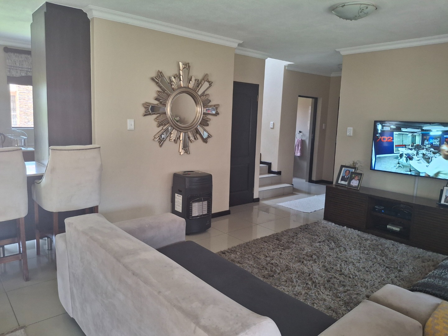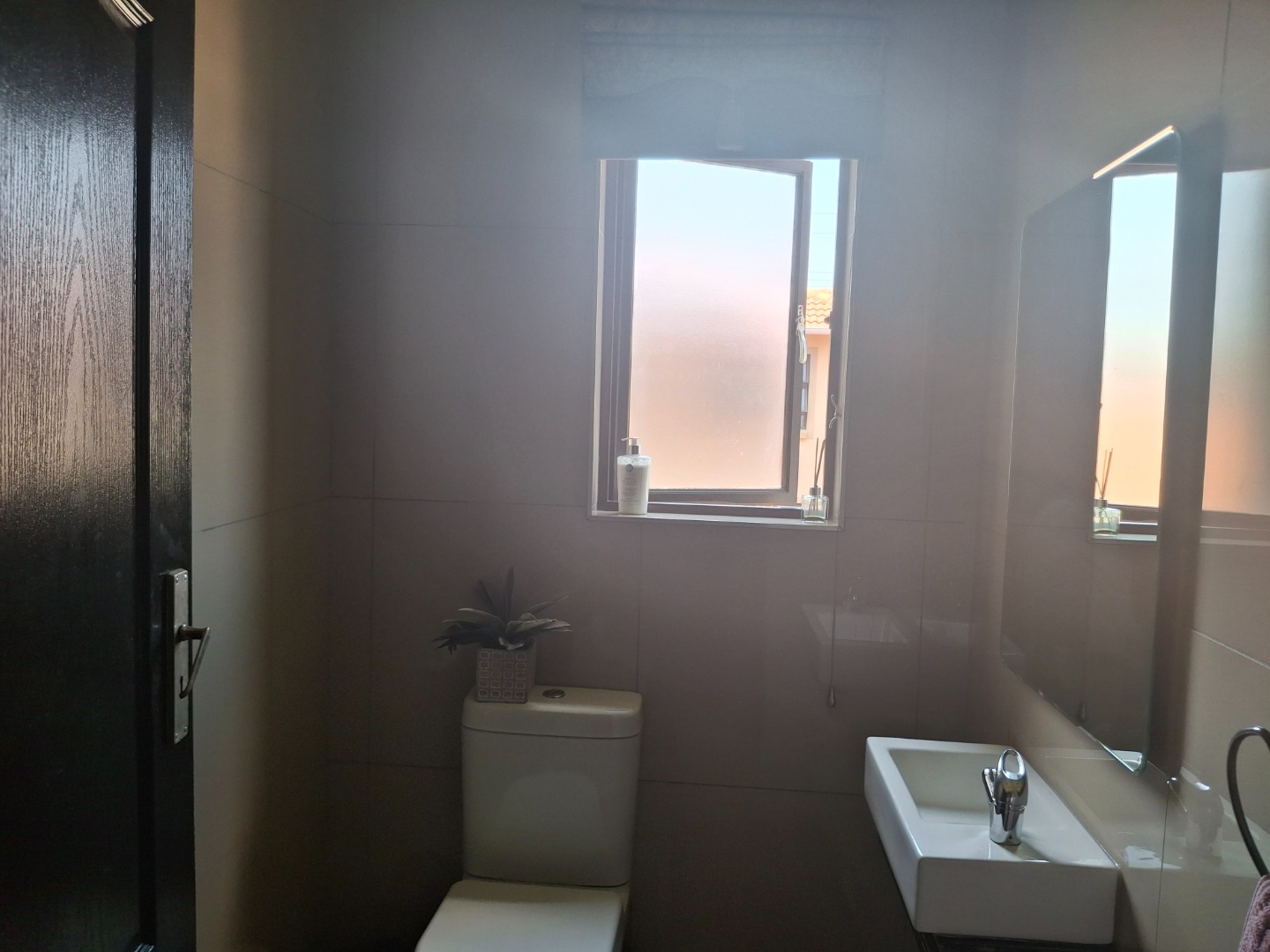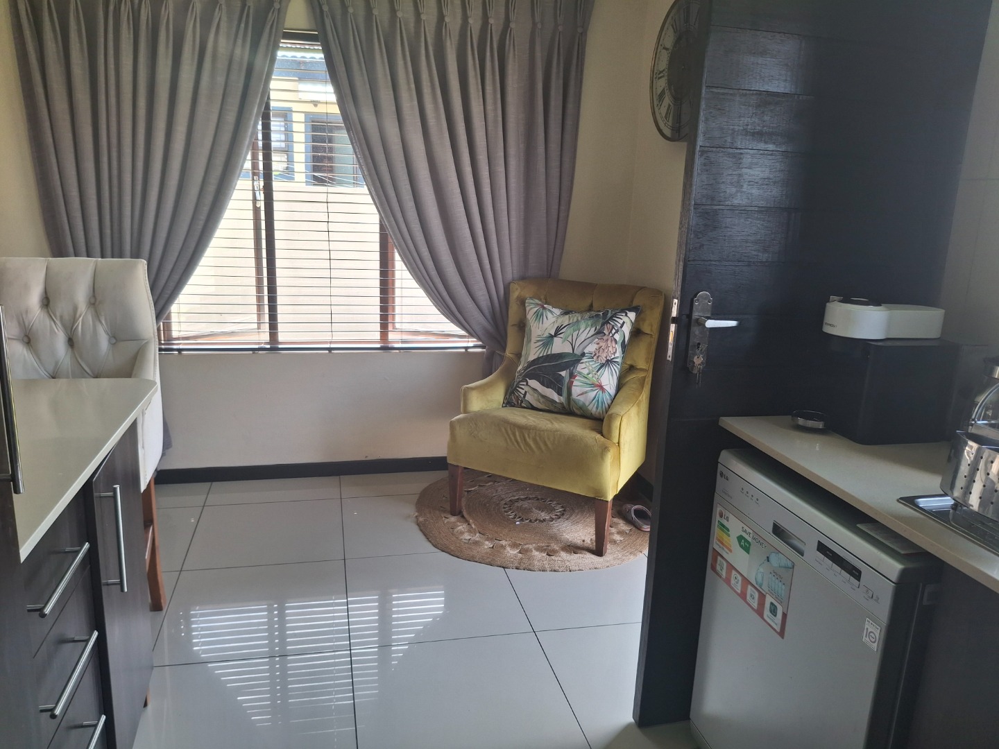 Discover this inviting 3-bedroom, 3-bathroom rental home situated within a secure estate in Amberfield Valley, Centurion. Boasting a generous 160 sqm floor size on a 1000 sqm erf, this residence offers a comfortable and modern living experience. The open-plan layout seamlessly connects the lounge and dining areas, featuring clean tiled flooring, neutral wall colours, and elegant crown molding, creating a bright and welcoming atmosphere. Natural light floods the living spaces, enhancing the contemporary aesthetic.