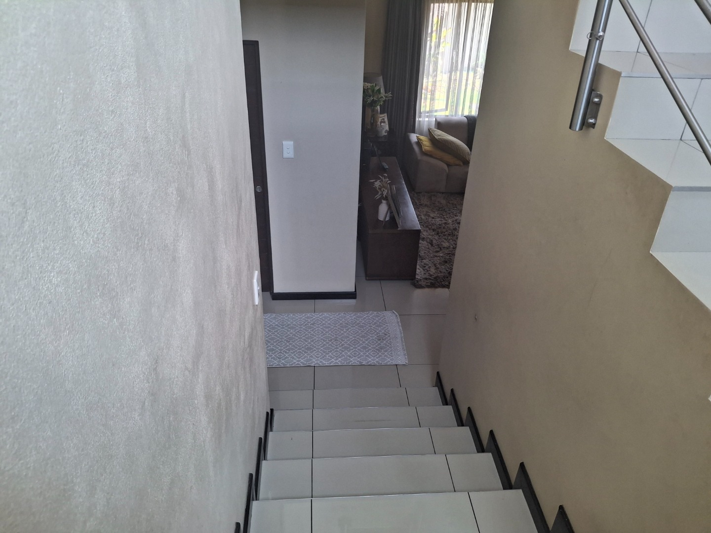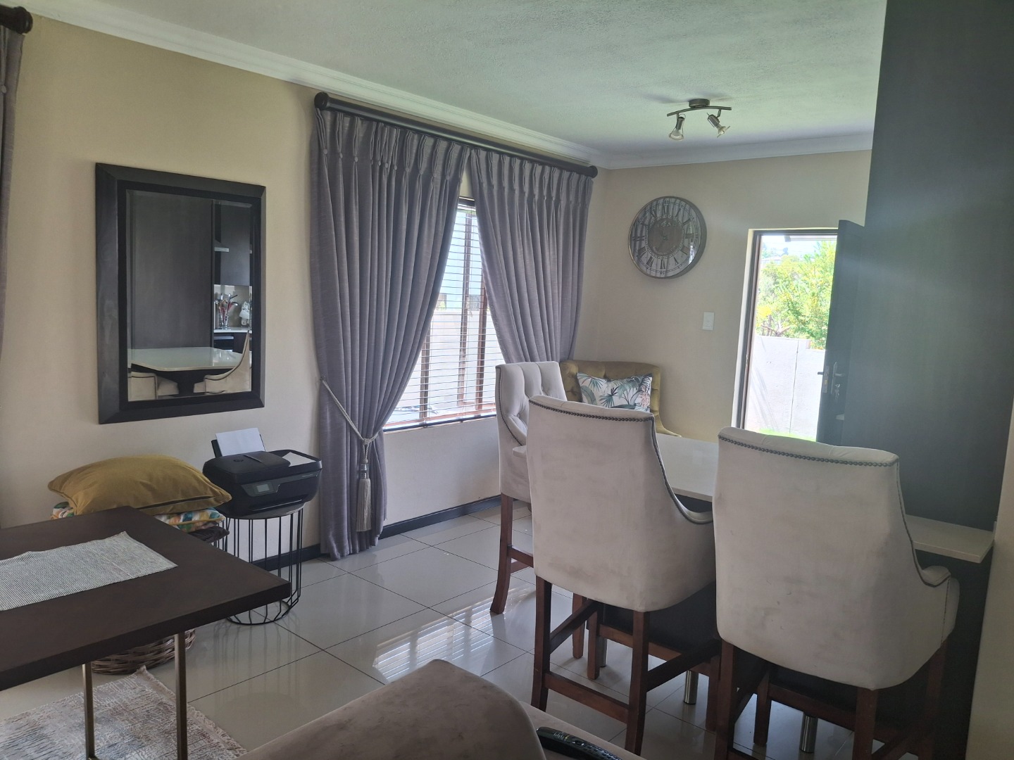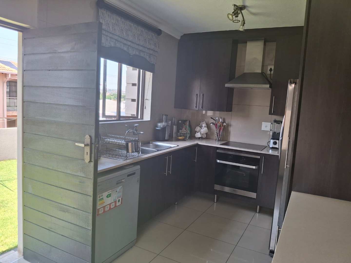 Discover this inviting 3-bedroom, 3-bathroom rental home situated within a secure estate in Amberfield Valley, Centurion. Boasting a generous 160 sqm floor size on a 1000 sqm erf, this residence offers a comfortable and modern living experience. The open-plan layout seamlessly connects the lounge and dining areas, featuring clean tiled flooring, neutral wall colours, and elegant crown molding, creating a bright and welcoming atmosphere. Natural light floods the living spaces, enhancing the contemporary aesthetic.