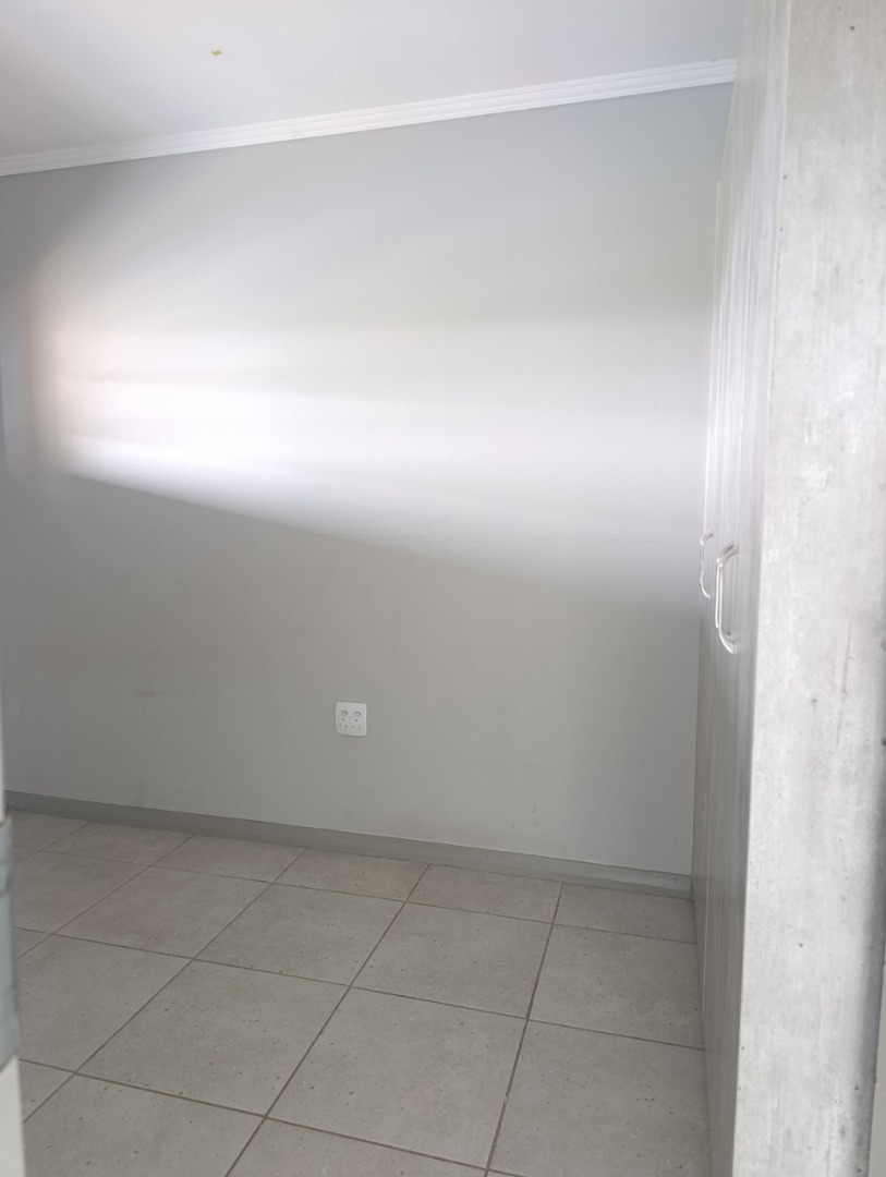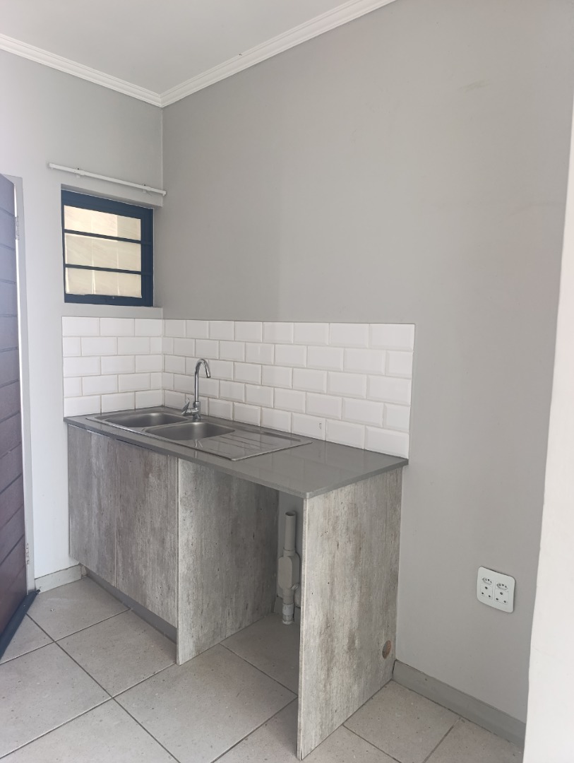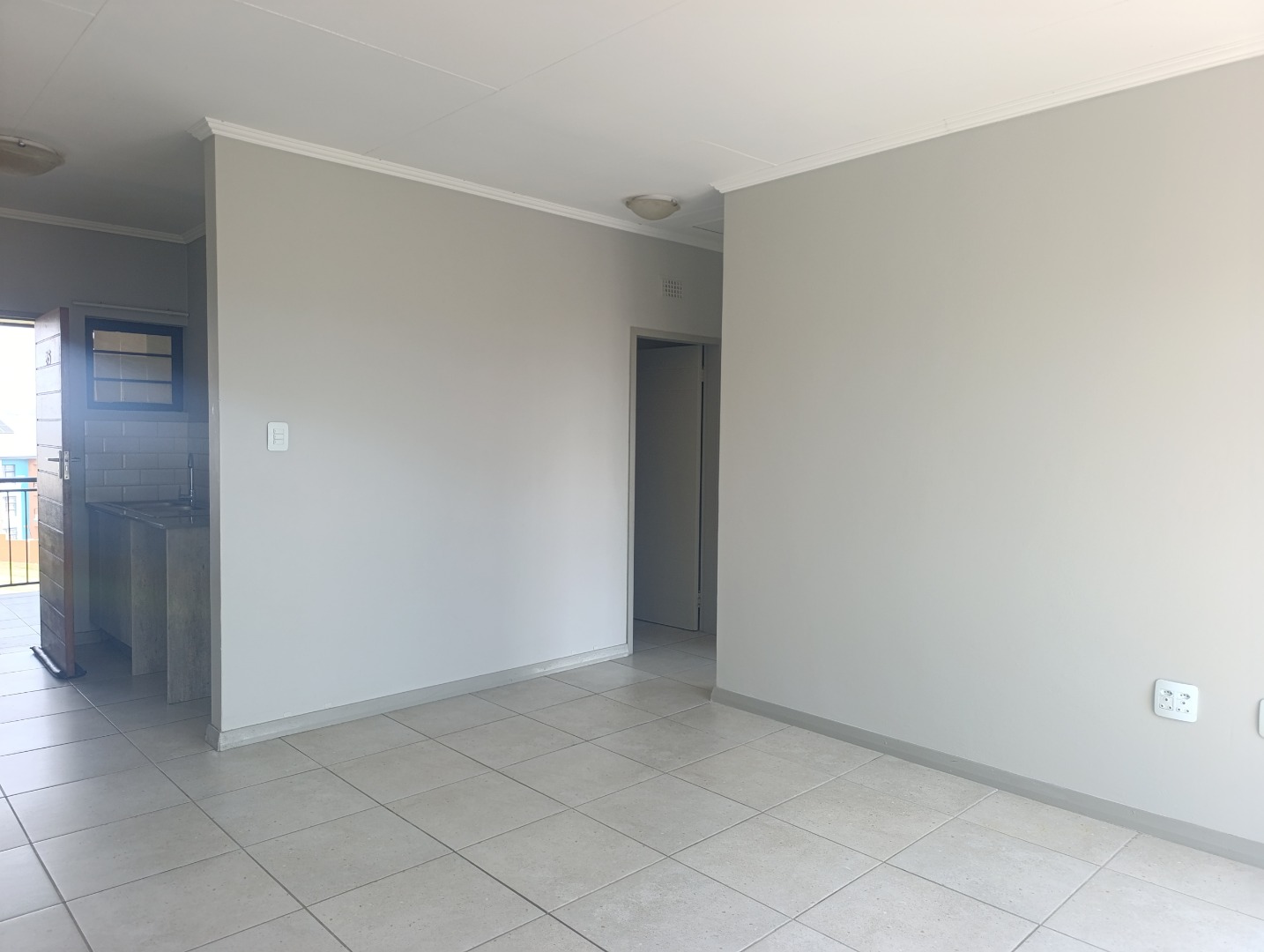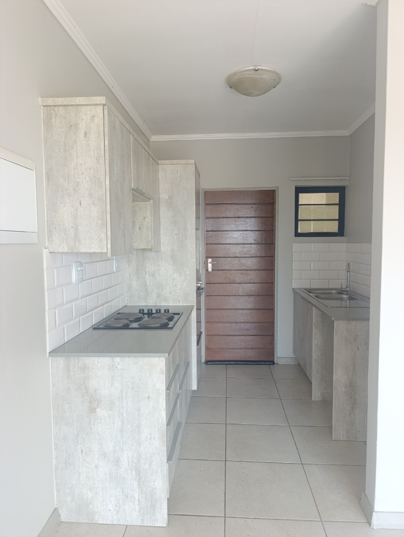 Discover this contemporary 2-bedroom, 1-bathroom apartment situated within a sought-after complex in Amberfield, Centurion. The heart of this home is its modern, open-plan living area, seamlessly integrating a stylish kitchen. The kitchen boasts sleek light wood-look cabinetry, grey countertops, and is fully equipped with a built-in Bosch oven, induction hob, and extractor fan. Consistent light-colored tiled flooring extends throughout, complemented by neutral walls and refined crown molding, creating a bright and inviting atmosphere.