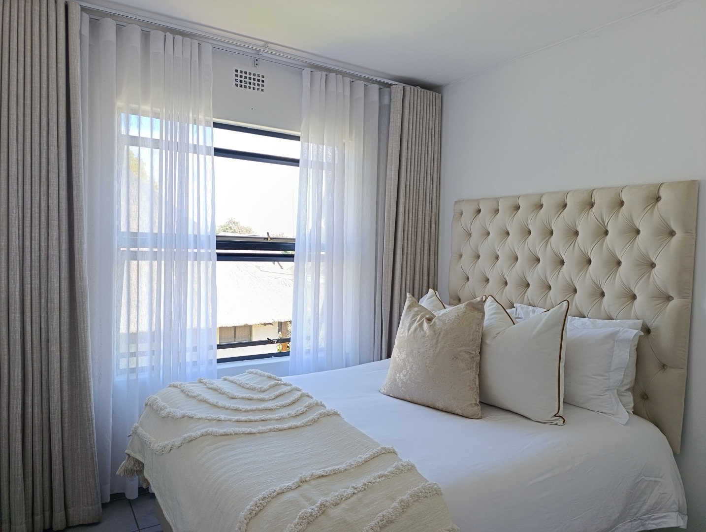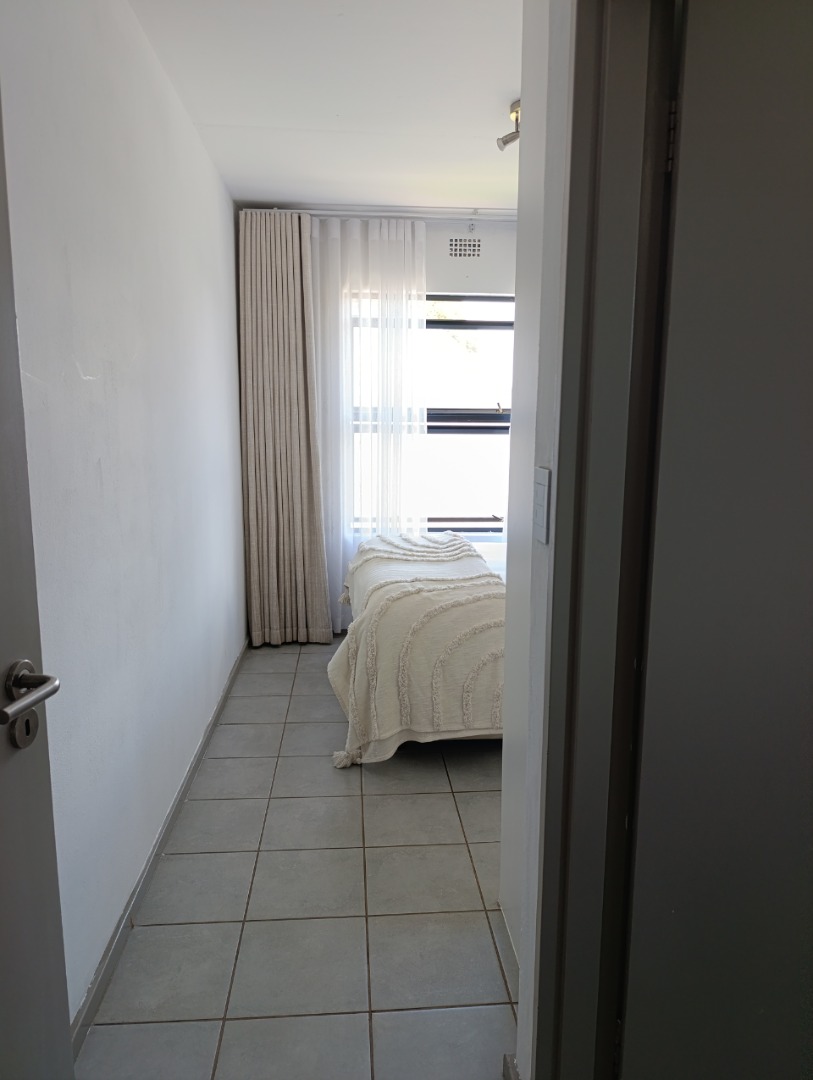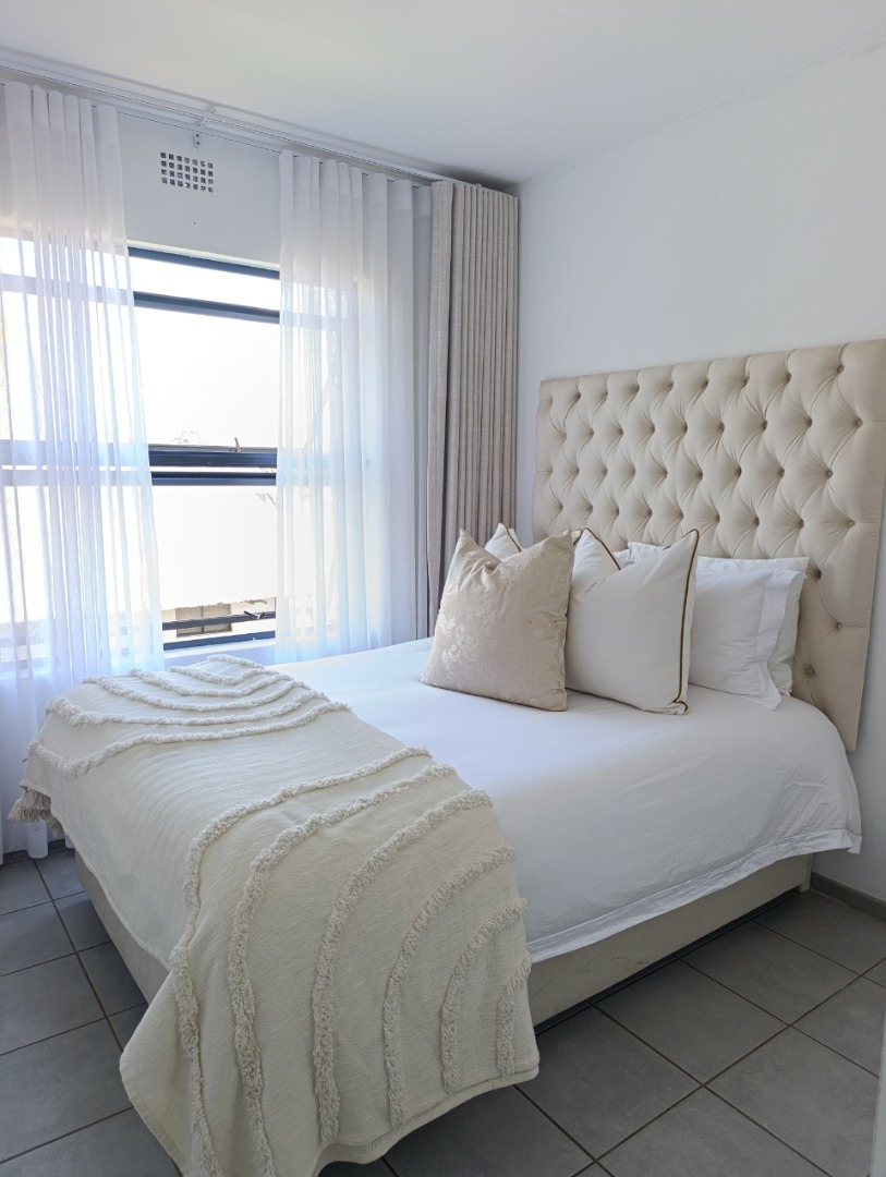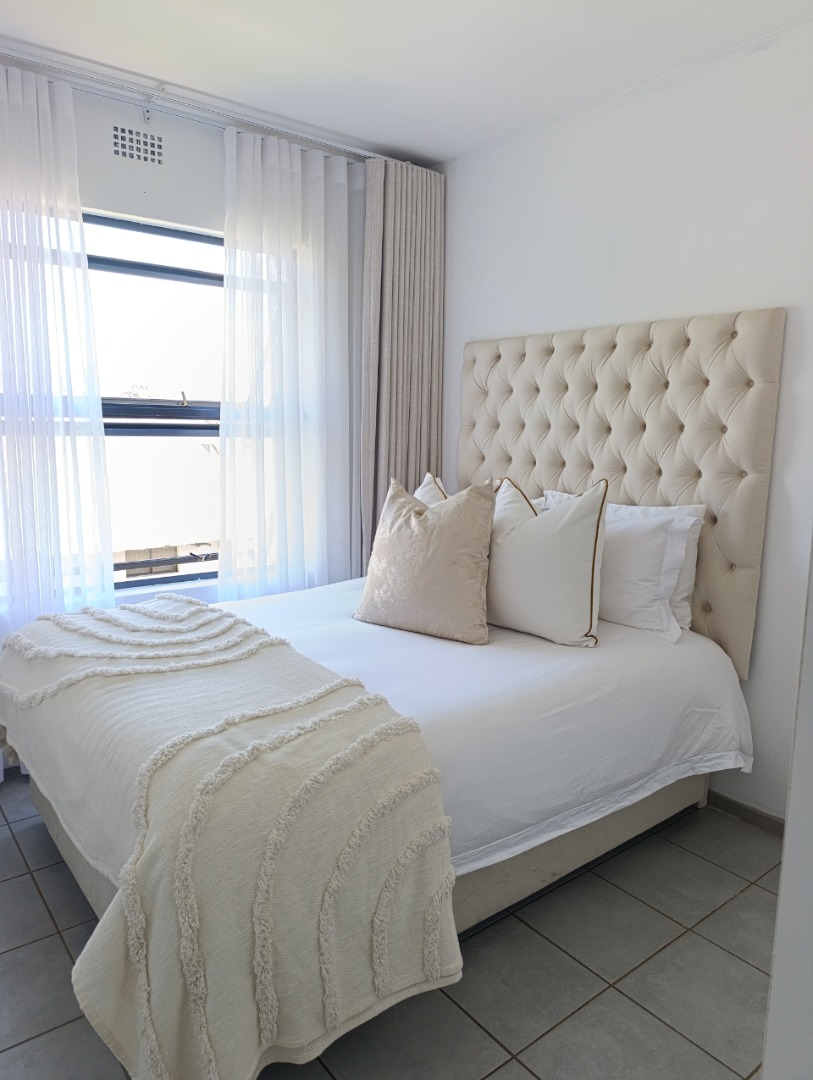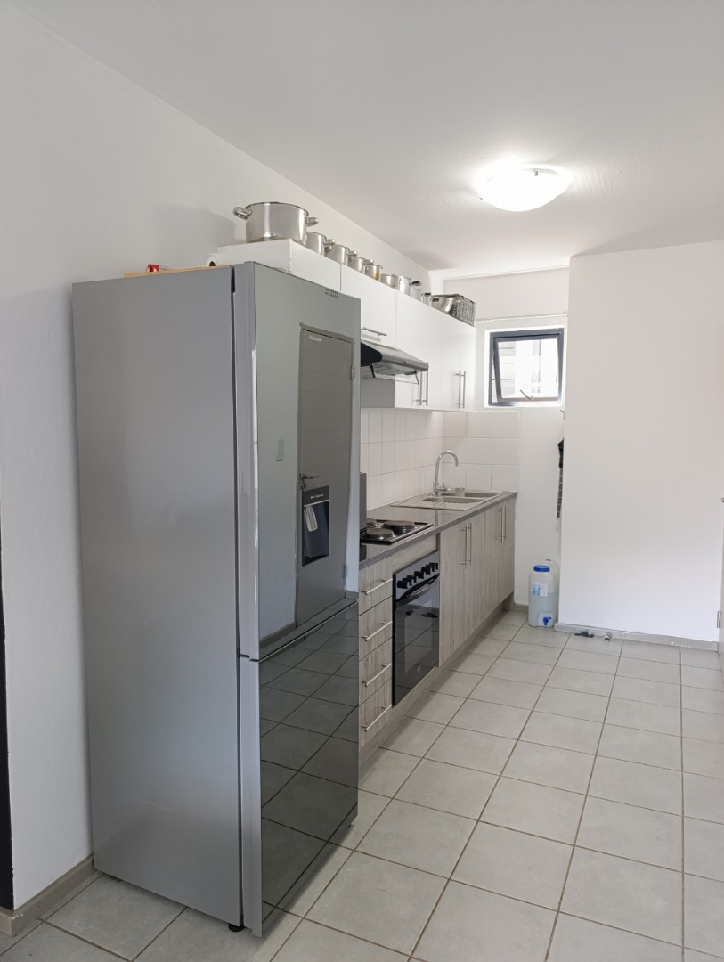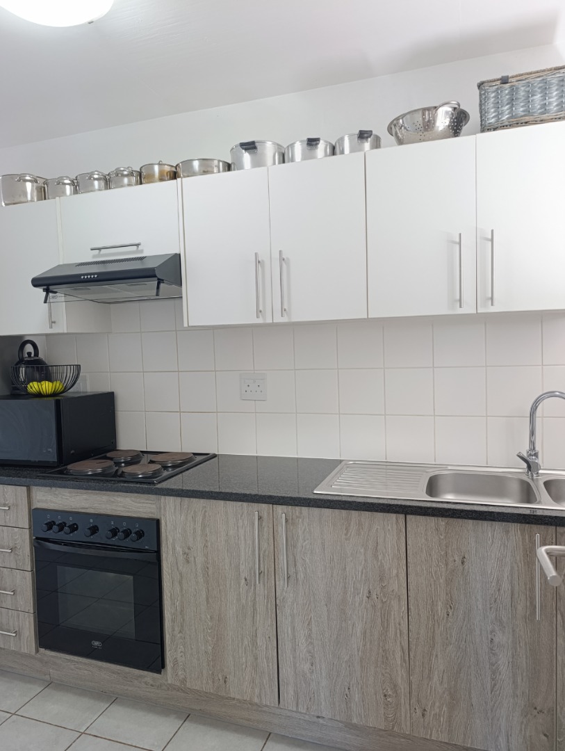 Discover modern living in this inviting 2-bedroom, 2-bathroom apartment located within a secure estate in Clubview, Centurion. Designed for comfort and convenience, this rental property offers a contemporary aesthetic with practical features ideal for professionals or small families seeking a lock-up-and-go lifestyle. The heart of the home is a stylish kitchen, boasting a modern two-tone design with white upper cabinets and natural wood-grain lower cabinetry, complemented by sleek black countertops. It comes equipped with a built-in oven, electric hob, and extractor fan, alongside a double stainless steel sink and ample storage. The tiled backsplash and flooring ensure easy maintenance, while a window provides natural light. The spacious living area is bathed in abundant natural light, thanks to large sliding glass doors that open onto a private balcony. This outdoor space, featuring artificial turf, offers a pleasant spot for relaxation. The interior is well-appointed with modern finishes and tiled flooring throughout, creating a clean and airy ambiance. Residents benefit from the peace of mind offered by living within a security complex and estate, providing a safe environment. The property includes one dedicated parking bay, adding to the convenience. Situated in Clubview, Centurion, this location offers easy access to local amenities and transport routes, making daily commutes and errands straightforward. This apartment is perfectly suited for those who appreciate modern design, security, and a low-maintenance lifestyle in a well-connected area. Key Features: * 2 Bedrooms * 2 Bathrooms * Modern Kitchen with Built-in Appliances * Spacious Living Area * Private Balcony with Artificial Turf * 1 Dedicated Parking Bay * Located within a Secure Estate * Tiled Flooring Throughout * Abundant Natural Light