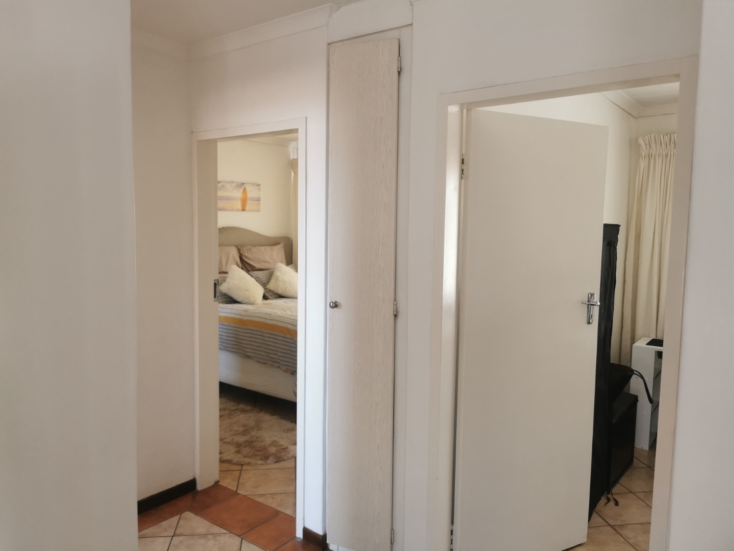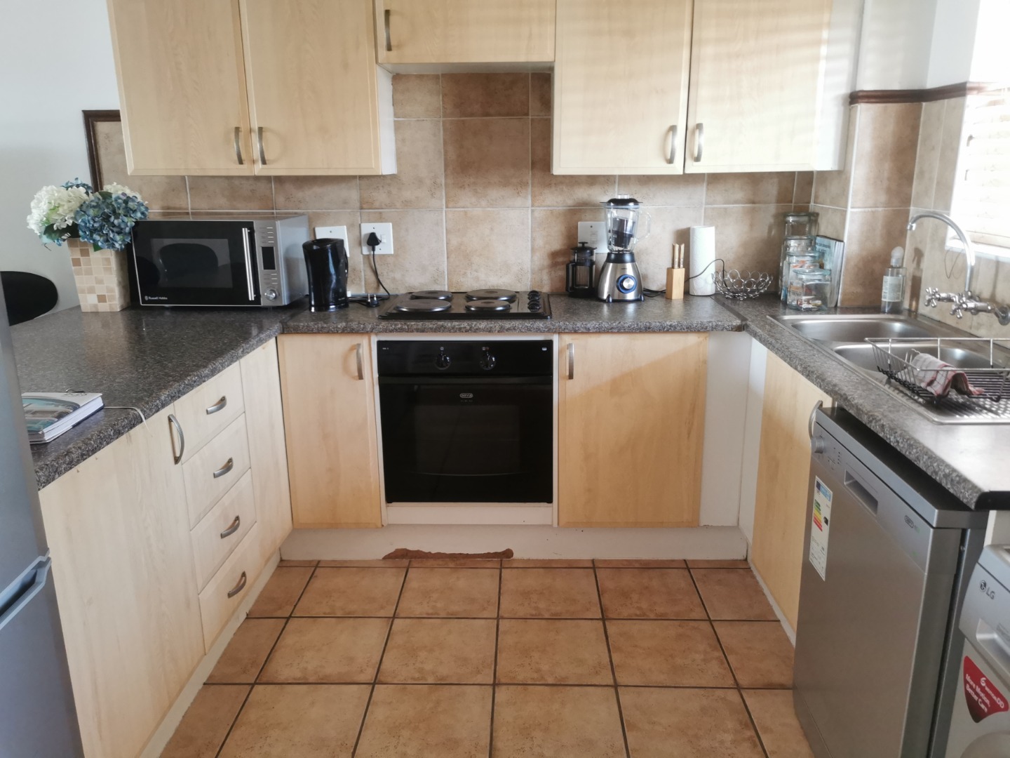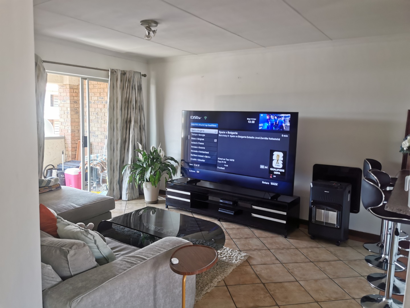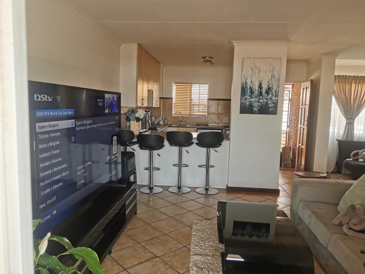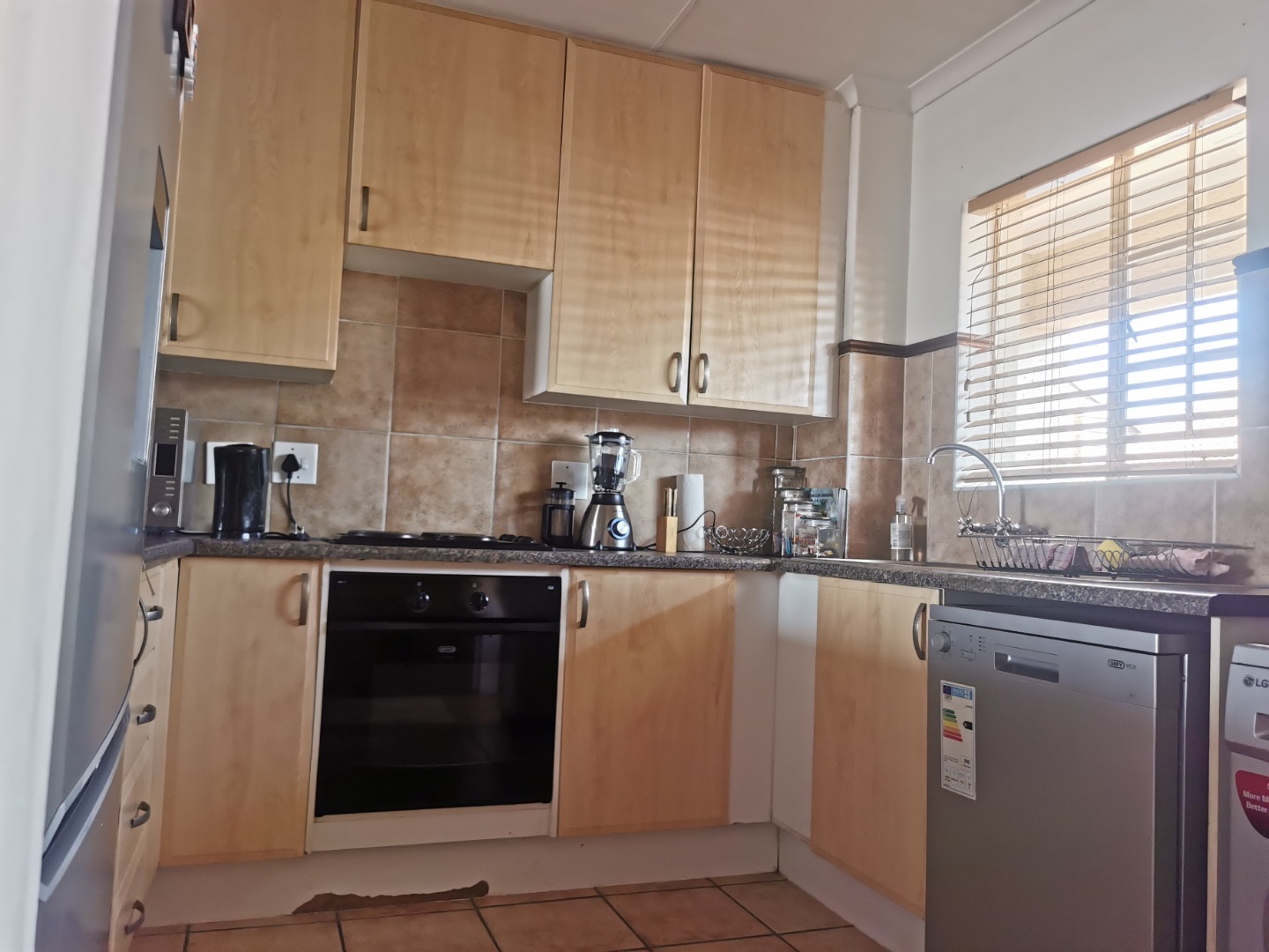Discover comfortable living in this spacious 103 sqm apartment located within a well-maintained complex in Die Hoewes, Centurion. This rental property features two well-proportioned bedrooms and two bathrooms, including a convenient en-suite. The heart of the home is its functional kitchen, equipped with light wood-look cabinetry, dark speckled countertops, and a tiled backsplash. Integrated appliances such as a built-in oven, hob, and dishwasher ensure modern convenience, complemented by ample storage and a double sink. The open-plan design seamlessly connects the kitchen to the dining area and a bright lounge, creating an inviting space for relaxation and entertaining. Large windows and a sliding door allow natural light to flood the living areas, which are uniformly finished with easy-to-maintain tiled flooring. This layout promotes a comfortable flow throughout the apartment, ideal for contemporary living. This apartment is perfectly suited for professionals or small families seeking a secure and convenient lifestyle. The property features a sturdy brick boundary wall and well-maintained landscaping, contributing to a pleasant and safe living space. The overall setting provides peace of mind for residents. This desirable location offers excellent access to local amenities, major transport routes, and various services, enhancing daily convenience for its occupants. Key Features: * Two Bedrooms, Two Bathrooms (one en-suite) * Spacious 103 sqm floor area * Modern kitchen with built-in oven, hob, and dishwasher * Open-plan lounge and dining areas * Tiled flooring throughout * Secure complex living * Well-maintained exterior and landscaping * Convenient location with easy access to amenities