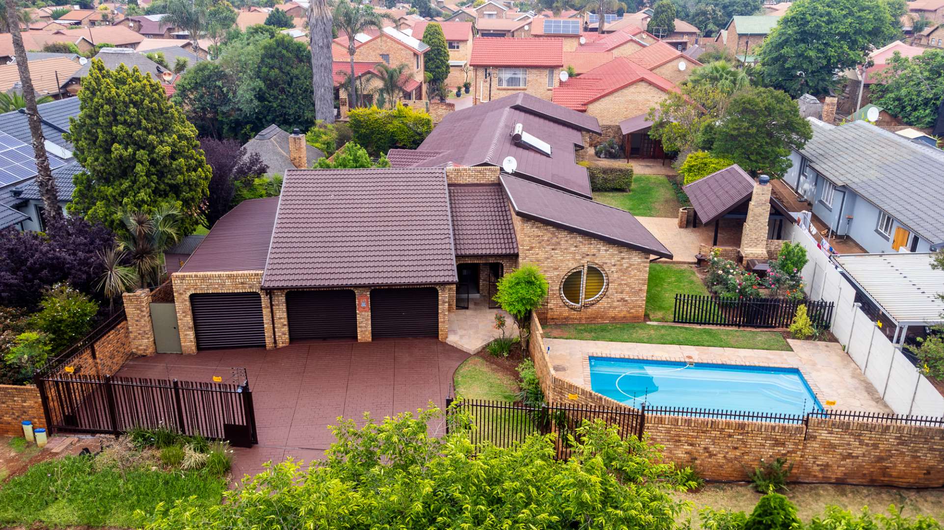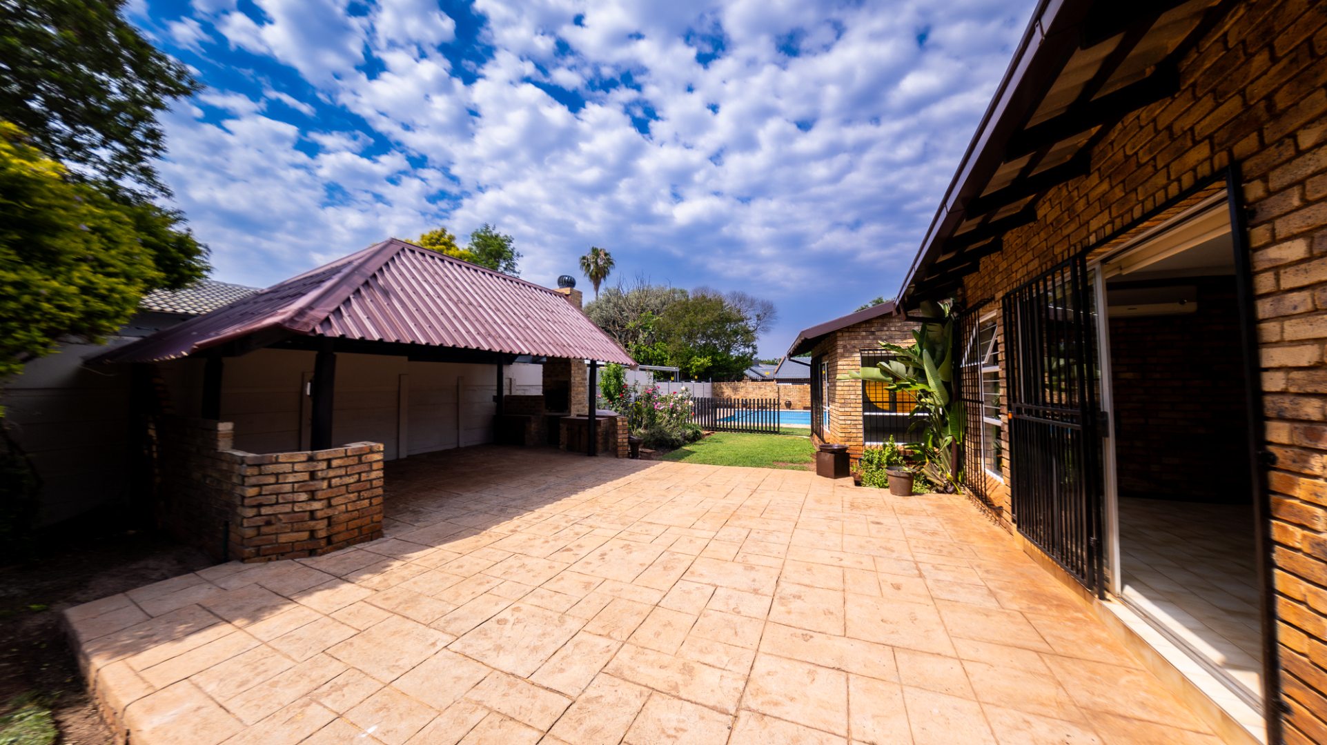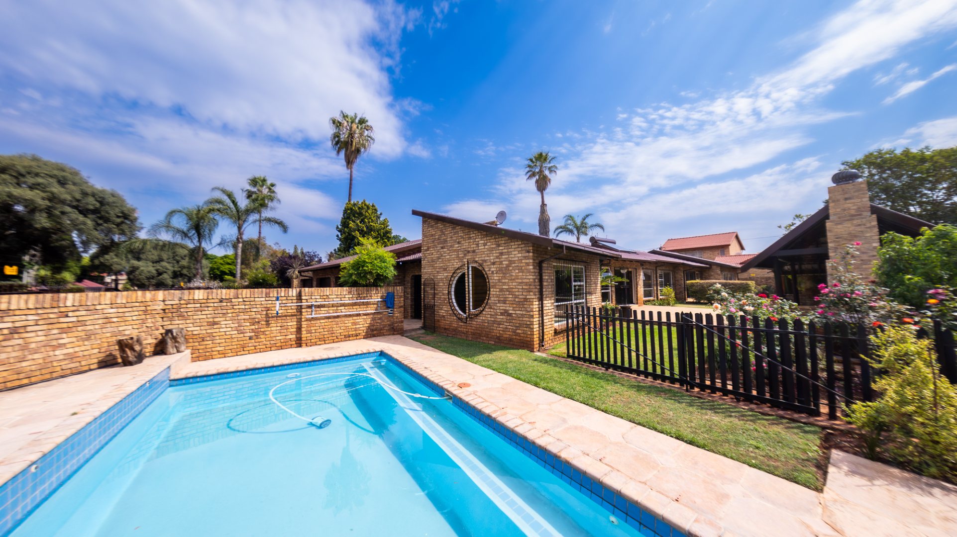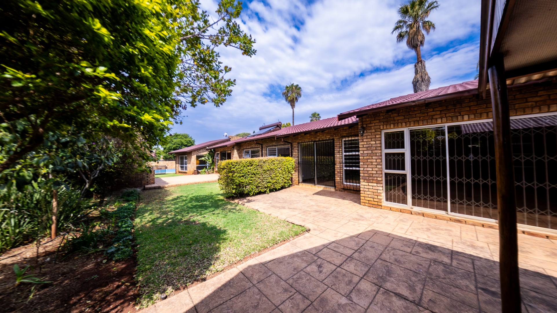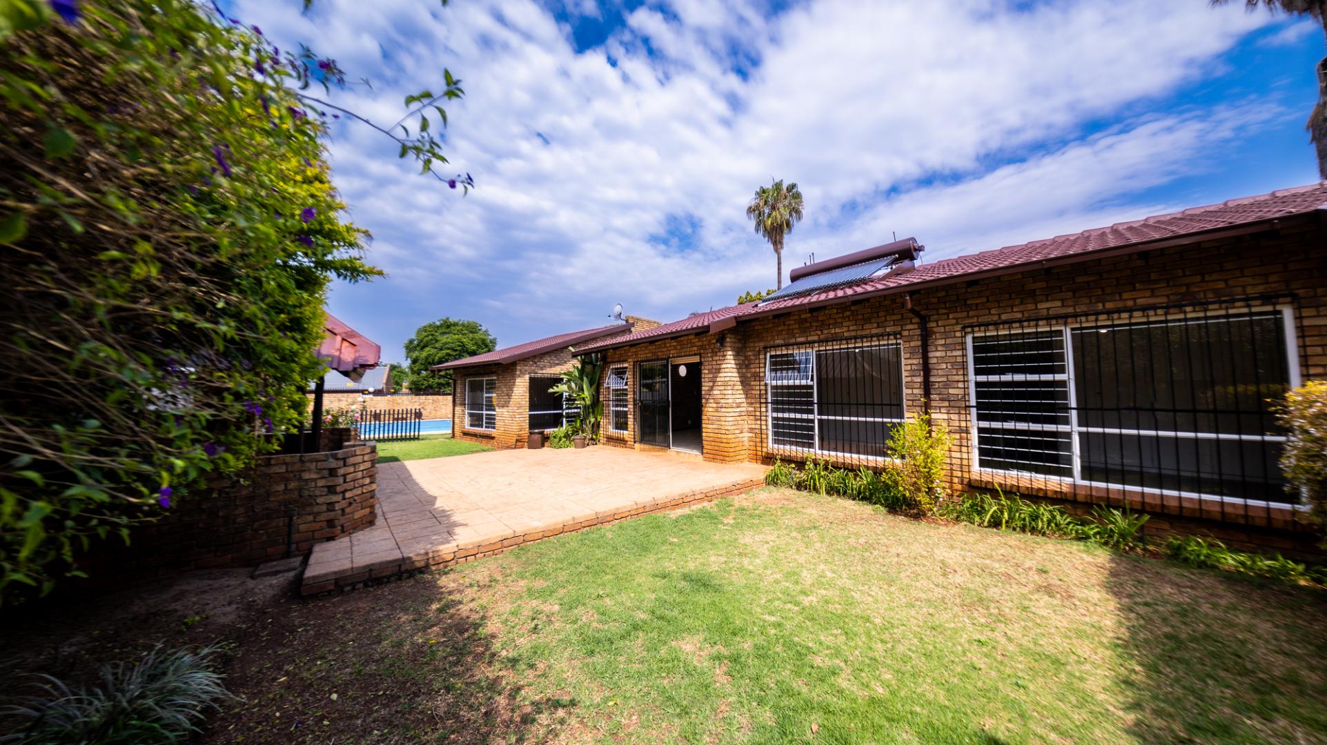 This distinguished residential rental property, situated in the desirable metropolitan area of Eldoraigne, Centurion, offers an expansive living experience across 367 square metres on a 1000 square metre erf. The residence comprises three well-appointed bedrooms, including a primary suite with an en-suite bathroom, complemented by an additional full bathroom. Functional living spaces include two lounges, a dedicated dining room, a family TV room, and a private study, providing ample room for both relaxation and productivity. The property further benefits from a well-equipped kitchen, a dedicated laundry area, and staff quarters with outside toilets, ensuring comprehensive domestic support. Designed for an elevated lifestyle, the property features a private swimming pool, ideal for recreation and leisure. The outdoor area is enhanced by a lapa with a built-in braai, perfect for entertaining, and a meticulously maintained garden adorned with mature trees, vibrant rose bushes, and palm trees, all supported by an irrigation system. A paved patio and a wendy house add to the property's appeal, while the allowance for pets makes it an ideal family home. Security is paramount, with comprehensive features including a perimeter fence, electric fencing, an access gate, security gates, and burglar bars on windows, ensuring peace of mind. The residence also incorporates sustainable living solutions, featuring solar panels and a solar water heater, contributing to energy efficiency. Ample parking is provided with three garages and four additional parking spaces, accommodating multiple vehicles. Eldoraigne offers a well-established suburban environment within Centurion, providing convenient access to local amenities and transport routes, making it a highly sought-after location for discerning tenants. Key Features: * Three Bedrooms, Two Bathrooms (One En-suite) * Two Lounges, Dining Room, Family TV Room, Study * Private Swimming Pool with Lapa and Built-in Braai * Expansive, Irrigated Garden with Mature Landscaping * Three Garages and Four Additional Parking Spaces * Comprehensive Security: Electric Fencing, Access Gate, Burglar Bars * Sustainable Amenities: Solar Panels and Solar Water Heater * Staff Quarters, Laundry Facilities, and Wendy House * Pets Permitted