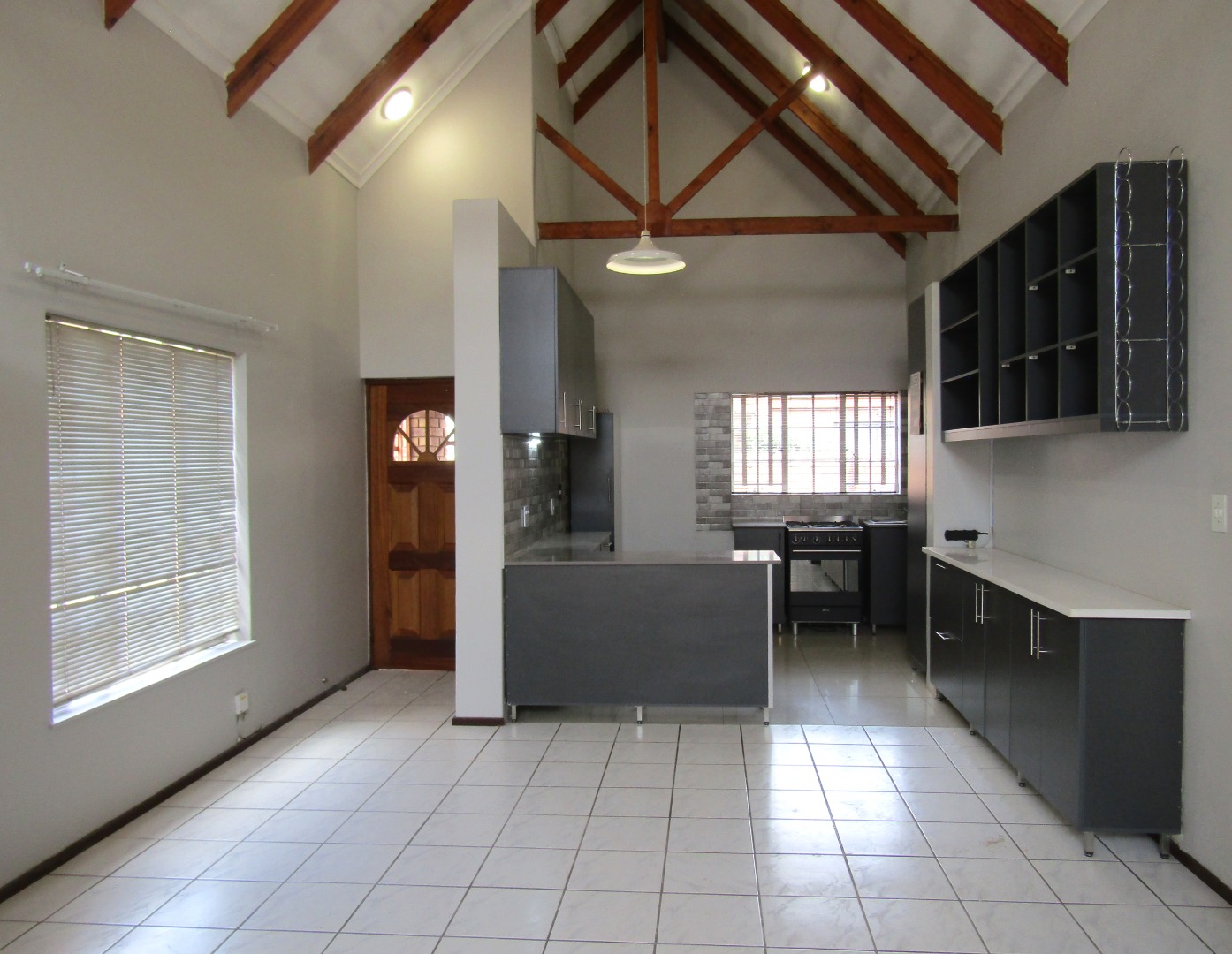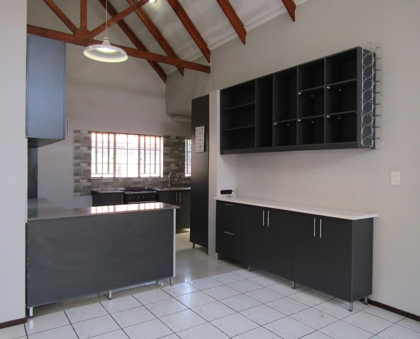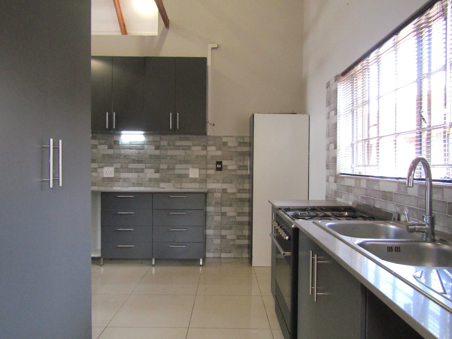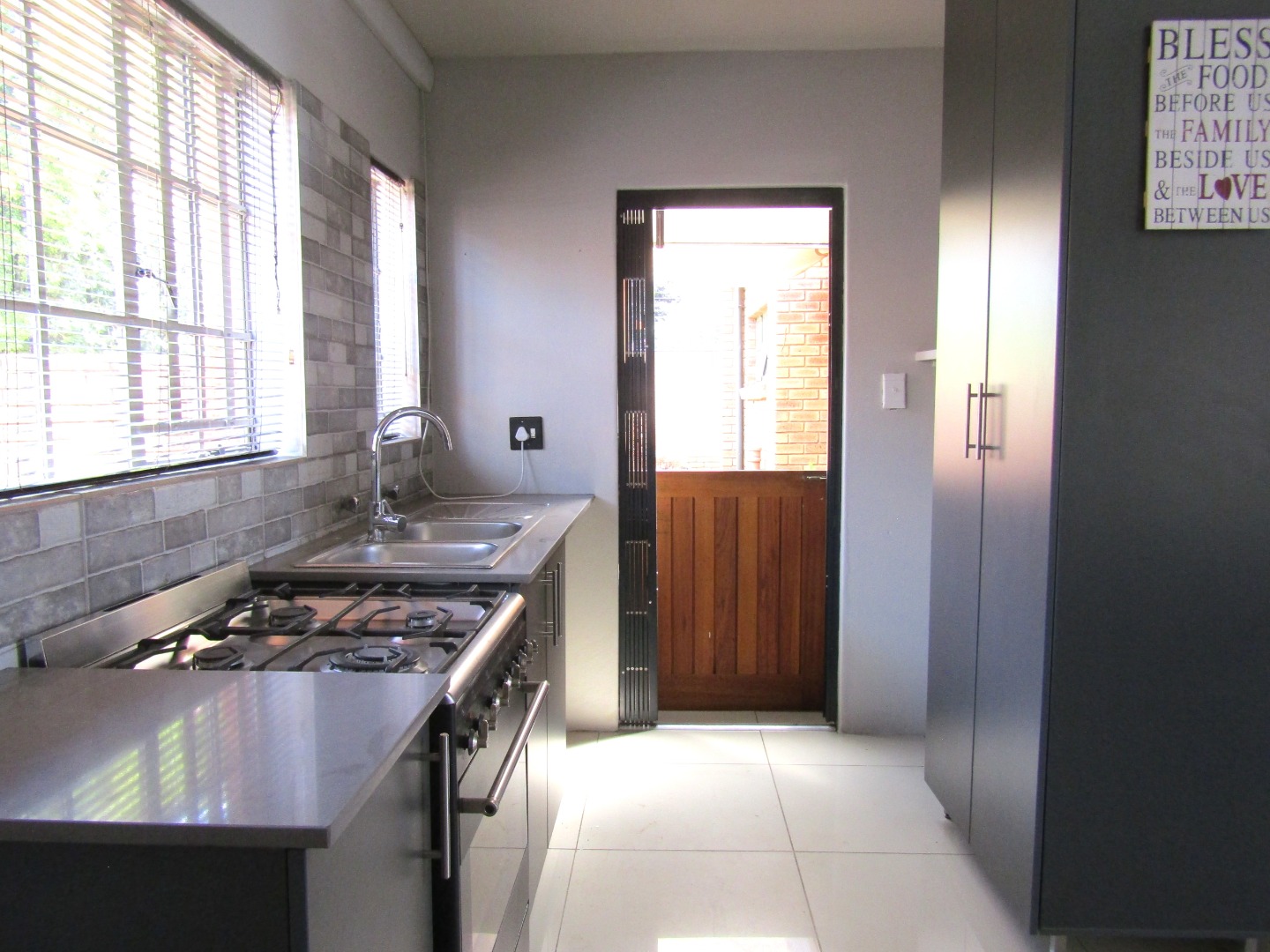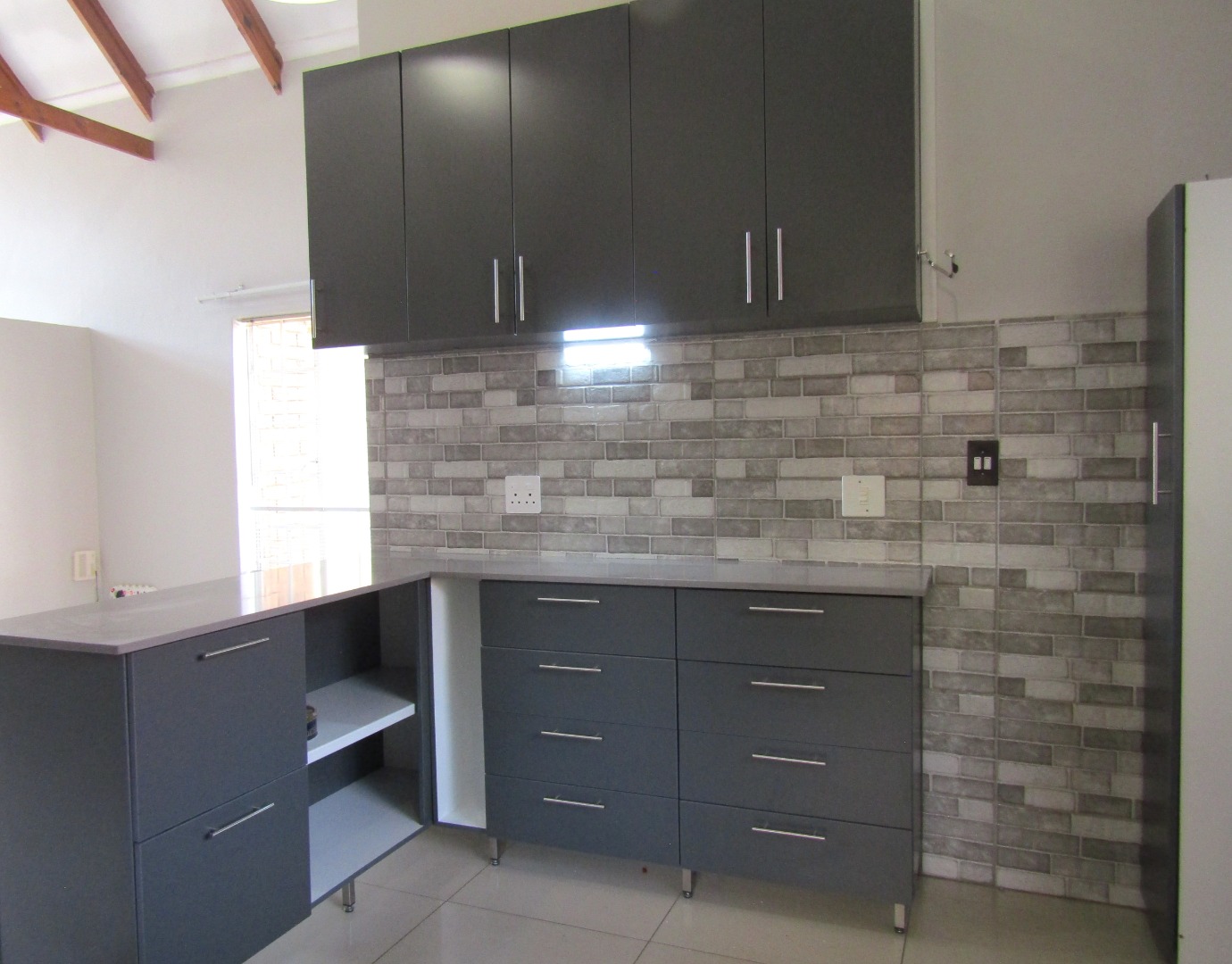with ample cupboards, blinds, double basin, pantry cupboard and space for two under