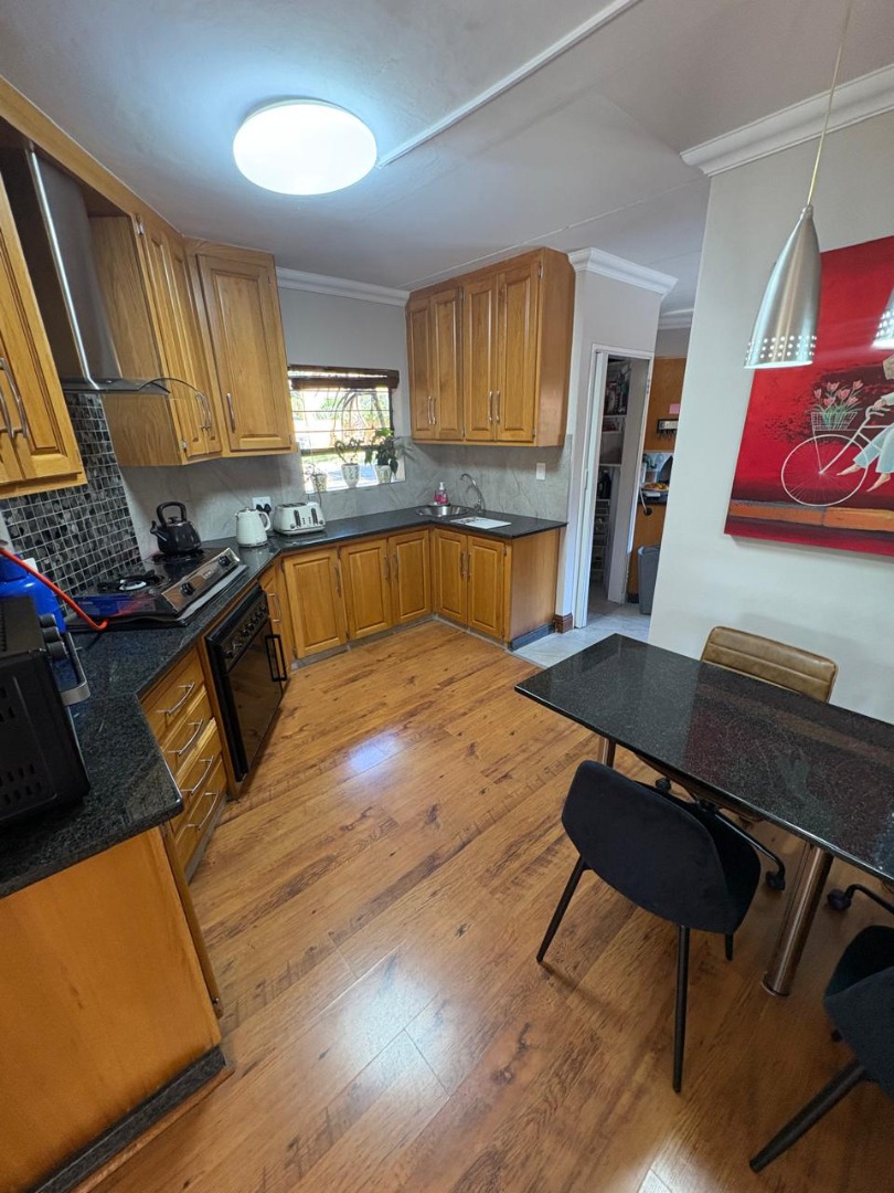 Open plan kitchen with breakfast nook, step in pantry cupboard as well as a spacious separate scullery with plenty of cupboards and space for appliances.