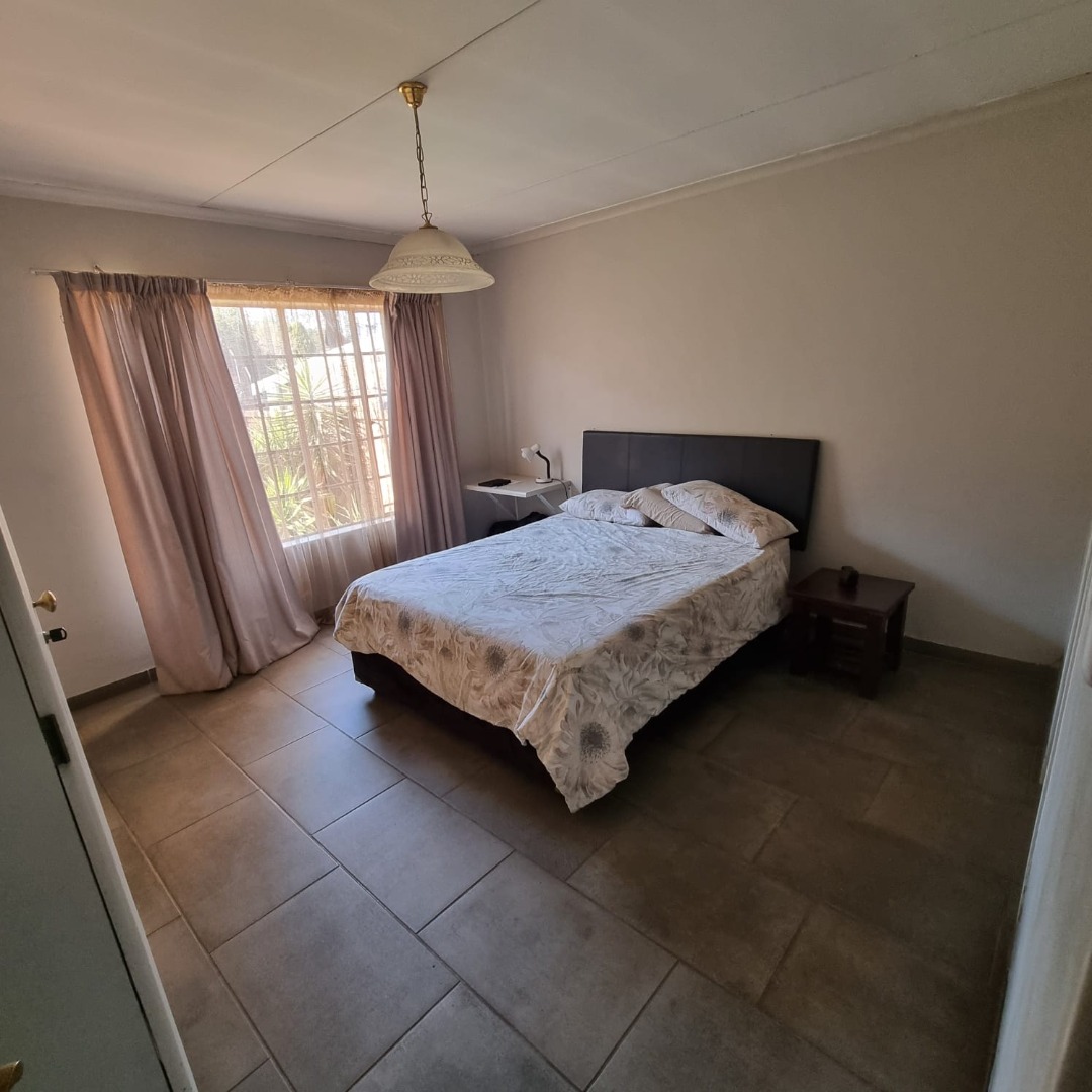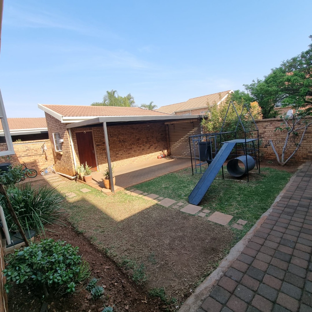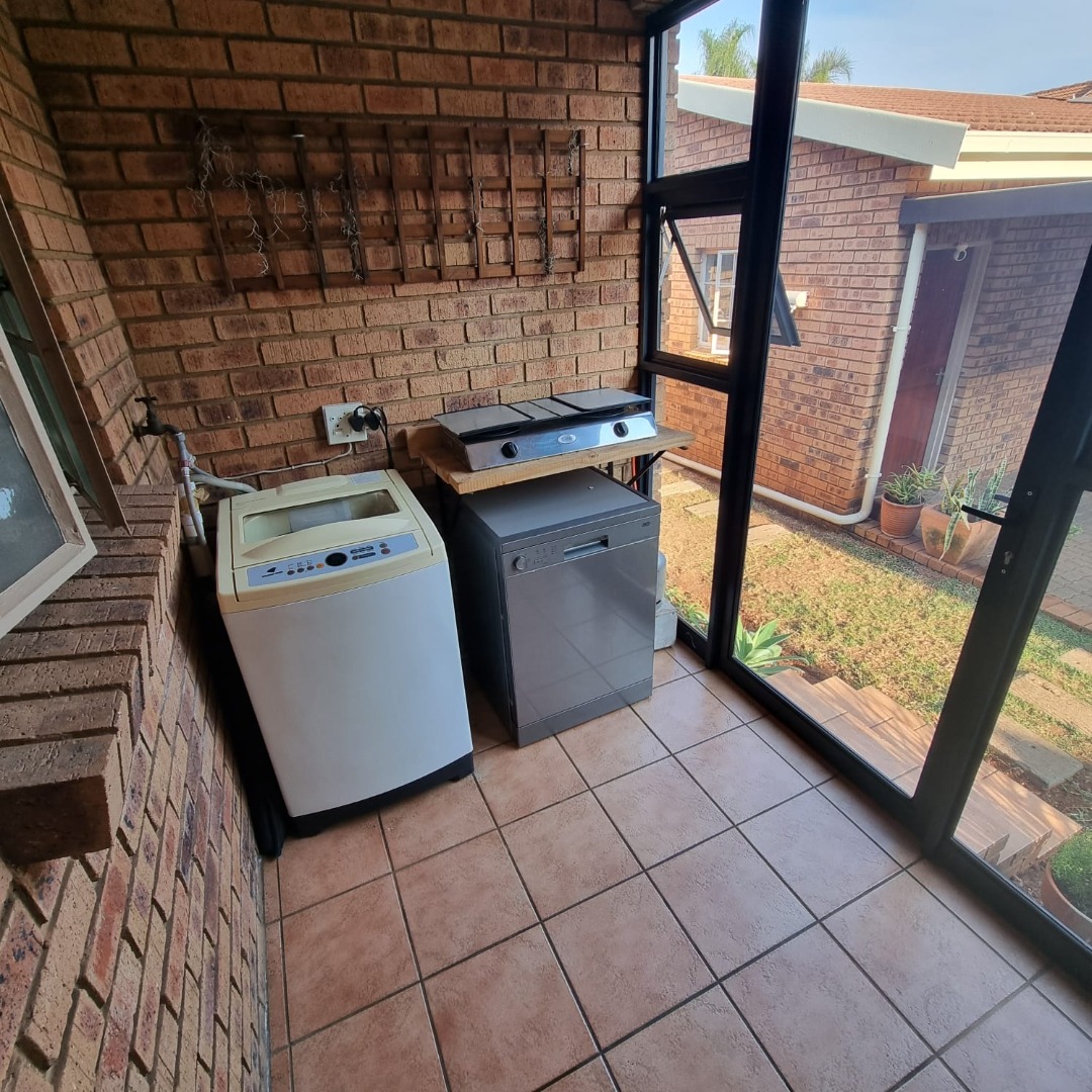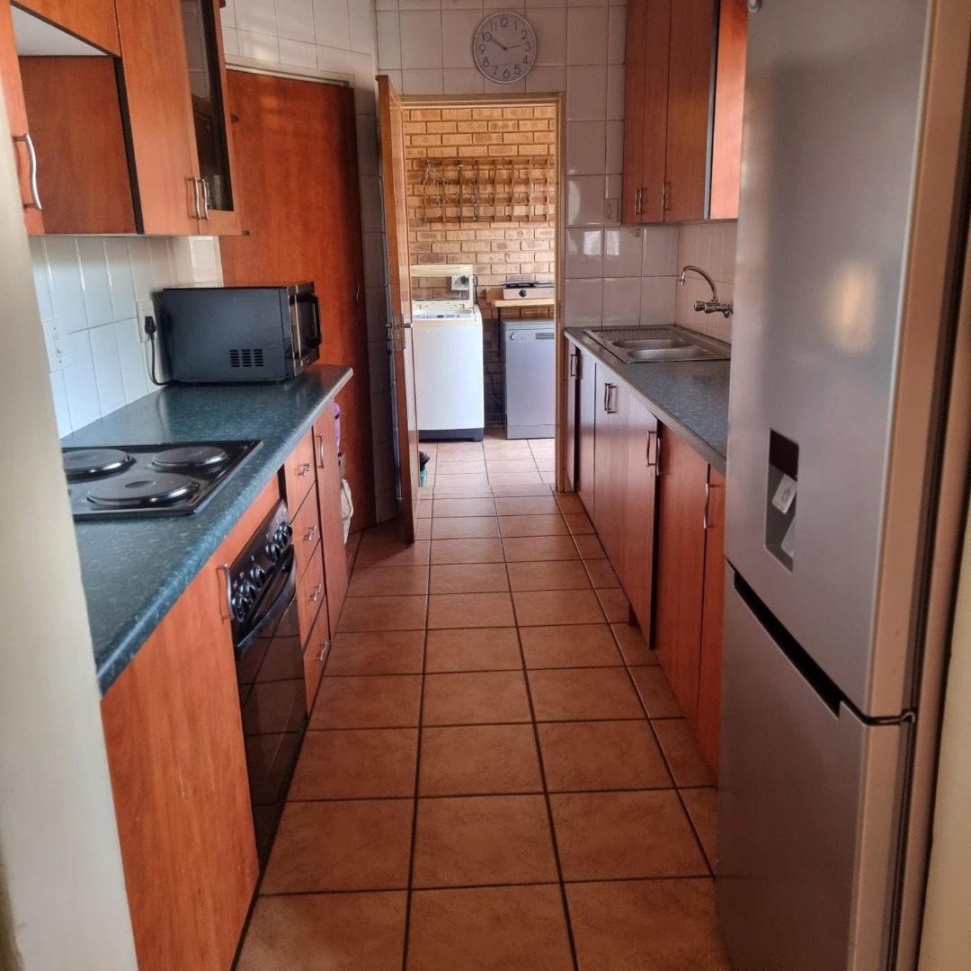 Discover this inviting 3-bedroom, 2-bathroom rental home located within a secure complex in Hennopspark, Centurion. Spanning 156 square meters, this residence offers a practical and comfortable living environment. The open-plan layout seamlessly connects the lounge and dining areas, featuring durable tiled flooring and abundant natural light from large sliding glass doors that lead directly to the outdoor space. The functional galley-style kitchen is equipped with a built-in hob and oven, ample wooden cabinetry, a dedicated space for a refrigerator, and benefits from a scullery and pantry for enhanced storage and convenience. An adjoining utility area provides space for laundry appliances.