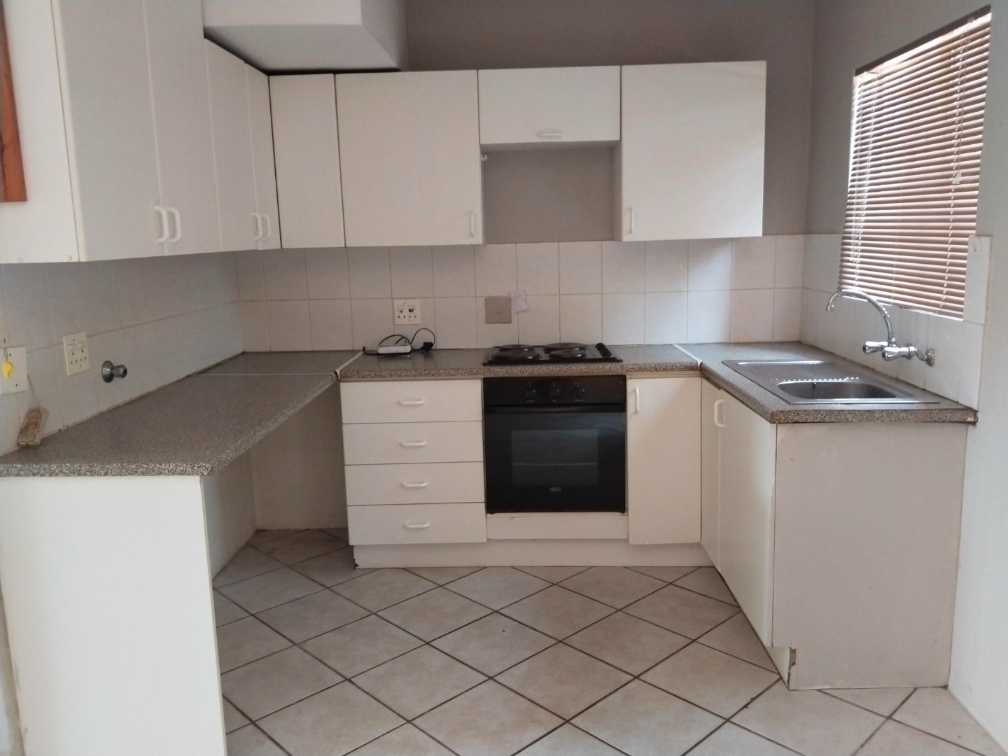 Discover this inviting two-bedroom, one-bathroom townhouse available for rent in the metropolitan area of Highveld, Centurion. Spanning 80 square metres, this property offers a practical and comfortable living space designed for modern convenience. The interior features an open-plan lounge and an integrated kitchen, both adorned with durable tiled flooring and neutral-toned walls, providing a versatile canvas for personal touches. The kitchen is equipped with ample white cabinetry, granite-look countertops, a built-in oven and hob, and a double sink, catering to everyday culinary needs. This cluster home is ideal for individuals or small families seeking a low-maintenance lifestyle. The durable face-brick exterior and tiled roof ensure longevity, while the private walled front yard, complete with a secure gate and paved driveway, offers a welcoming entrance and a small garden area. A covered carport provides dedicated parking. The property's layout, with its direct access to a garden/patio area via a sliding glass door, enhances the sense of space and offers an outdoor retreat. Pets are allowed, making it suitable for animal lovers. Security is a key consideration, with features including an access gate to the complex, a private walled front with a secure gate, a security gate on the sliding door, and burglar bars on windows, ensuring peace of mind for residents. The property's design prioritises functionality and safety within a residential complex setting. Situated in Highveld, Centurion, this rental property benefits from its location within a well-established metropolitan hub, offering convenient access to local amenities and transport routes. Key Features: * Two Bedrooms, One Bathroom * Open-Plan Lounge and Kitchen * Integrated Kitchen with Built-in Oven/Hob * Tiled Flooring Throughout * Private Walled Front Yard with Garden * Covered Carport * Access Gate and Security Features * Pets Allowed * 80 sqm Floor Size