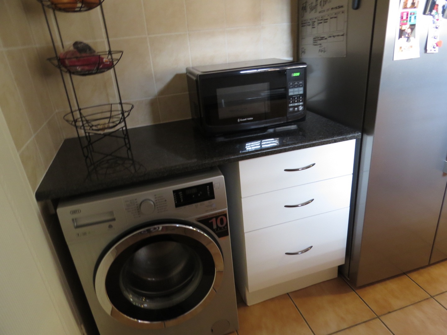 The double garage, with it's automated doors offers secure parking space. It is very neat and functional with fitted shelves and rubber floor covering. An interleading door provides direct access into the home. A carport provides additional covered parking space. The complex also offers adequate visitors parking.