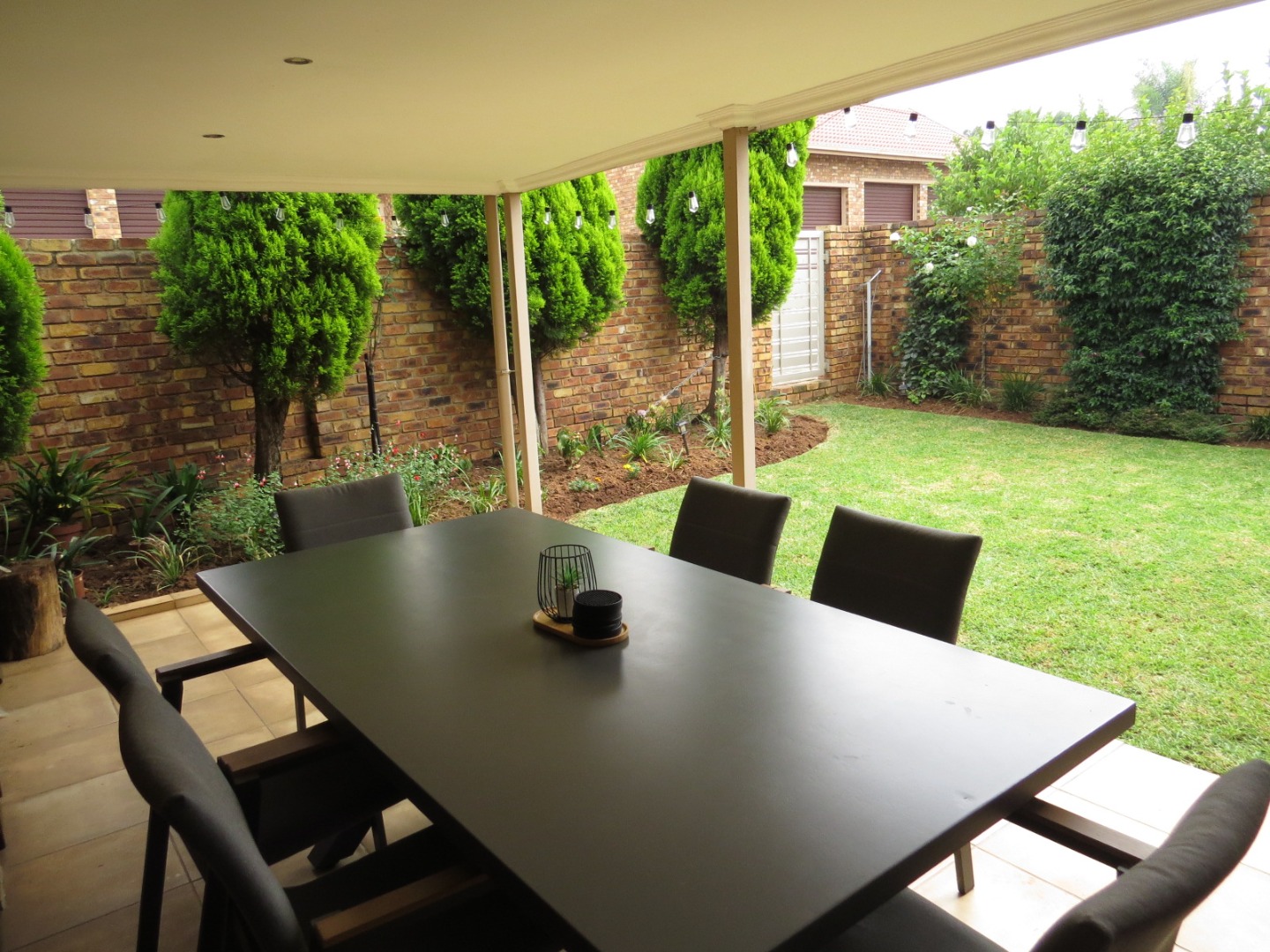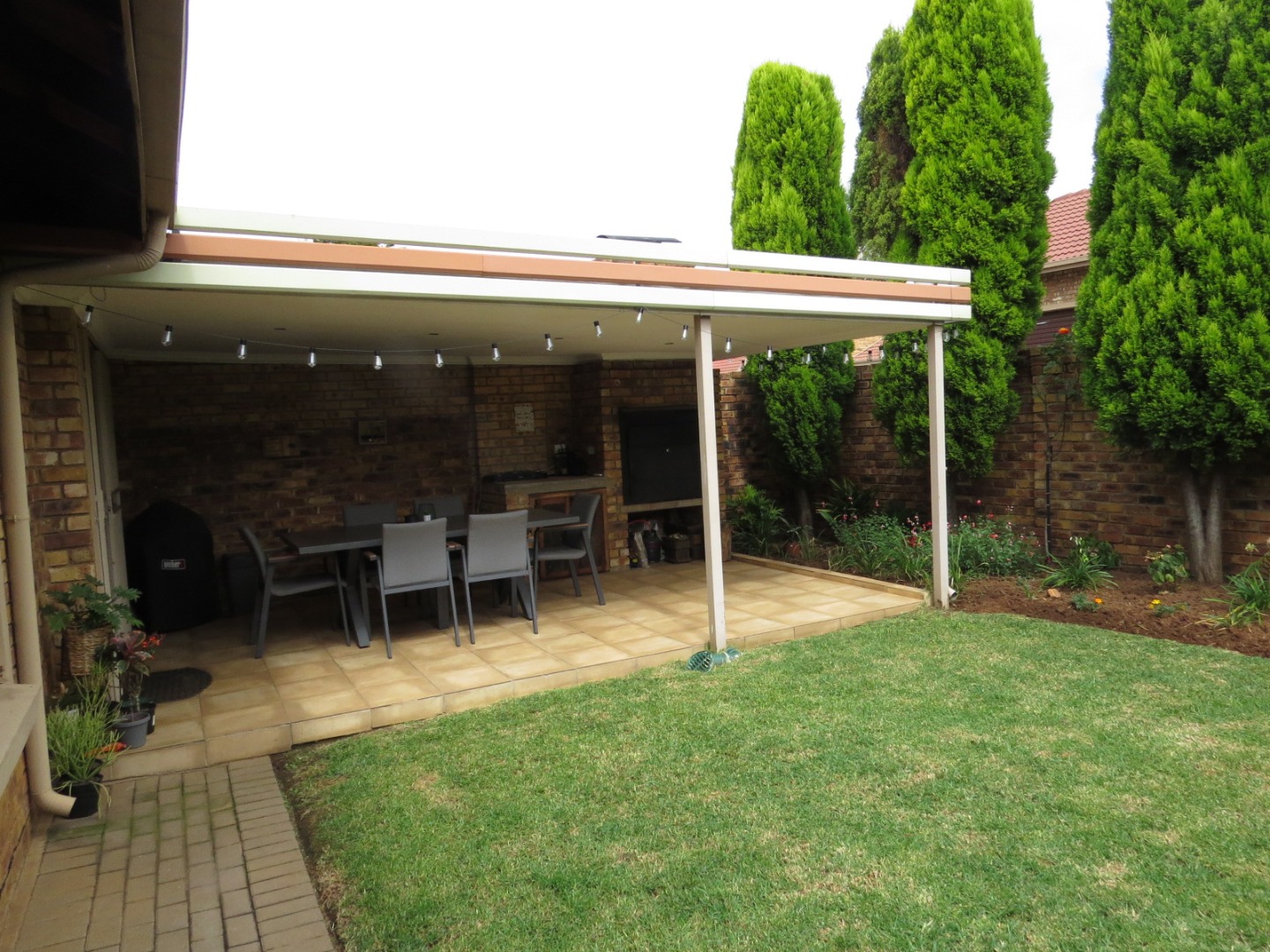 Step outside to discover a private oasis designed for relaxation and entertaining. The property features a spacious covered patio, perfect for outdoor dining. A built-in braai enhances the entertainment possibilities. The well-maintained garden, complete with a lush lawn and mature trees, offers excellent privacy. This is a pet friendly complex, making this an ideal home for animal lovers.