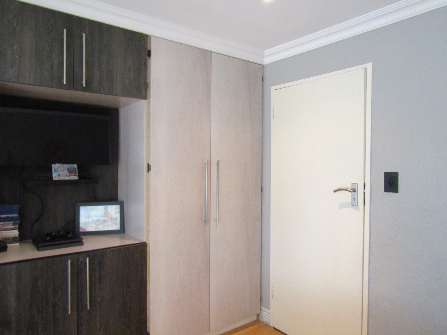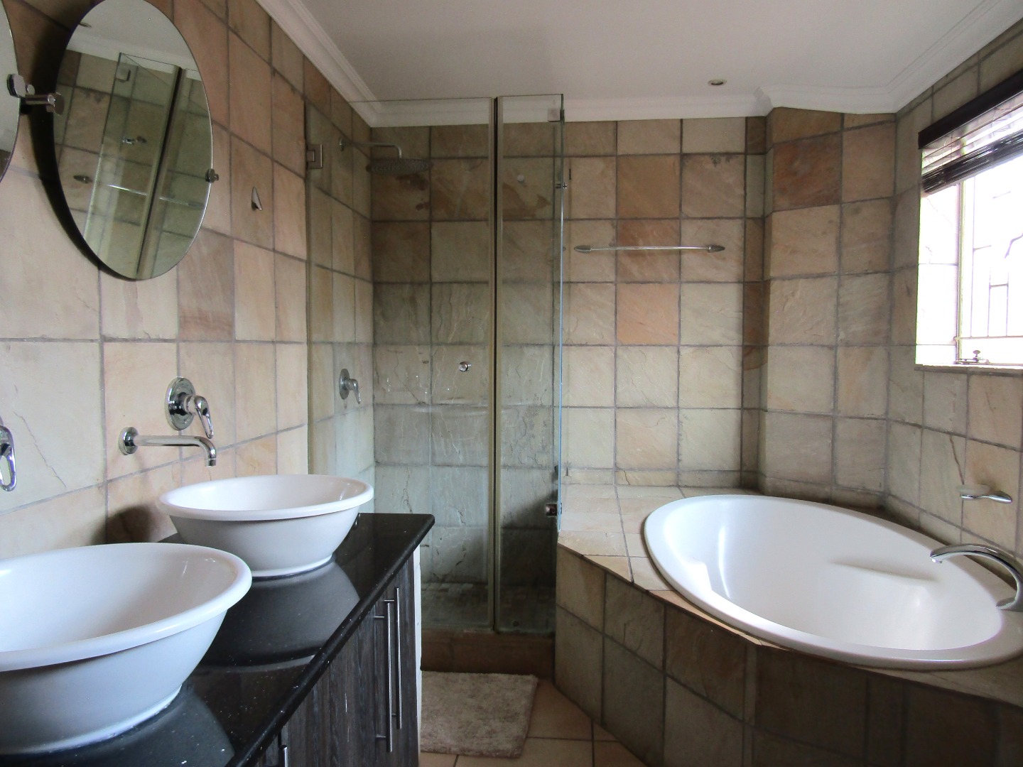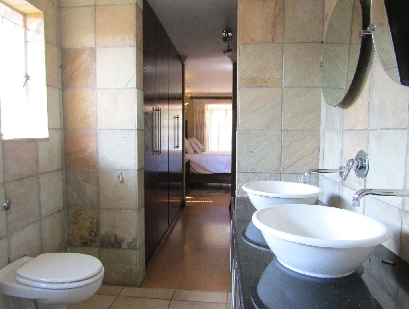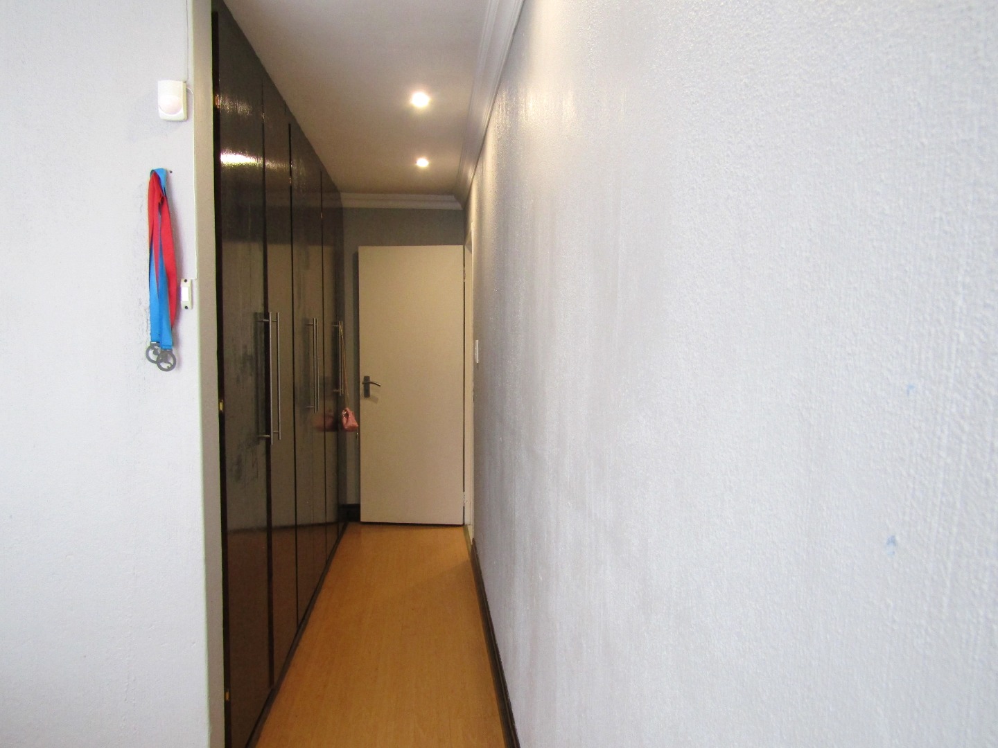 There are three bedrooms down the passage, all neatly fitted with laminated flooring and curtain rails. Two of the bedrooms have standard built in cupboards whilst the third bedroom has a walk-in closet and a full en-suite bathroom.