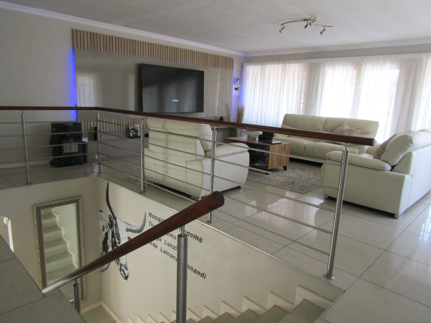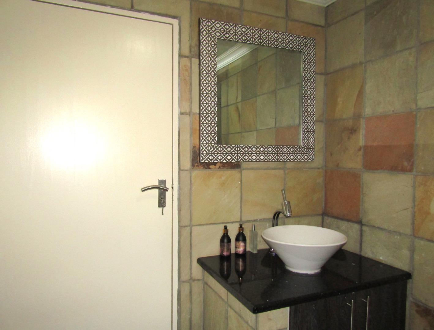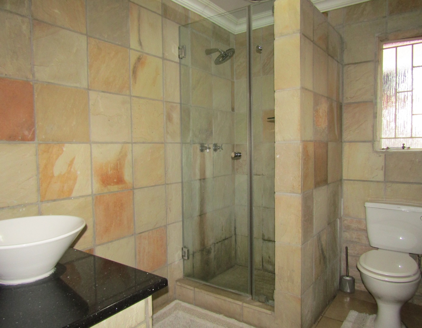 Downstairs all windows are fitted with burglar bars and the doors with security gates. There are a fully fitted alarm system and electric fence all around the yard and a large security gate allows access to the property.