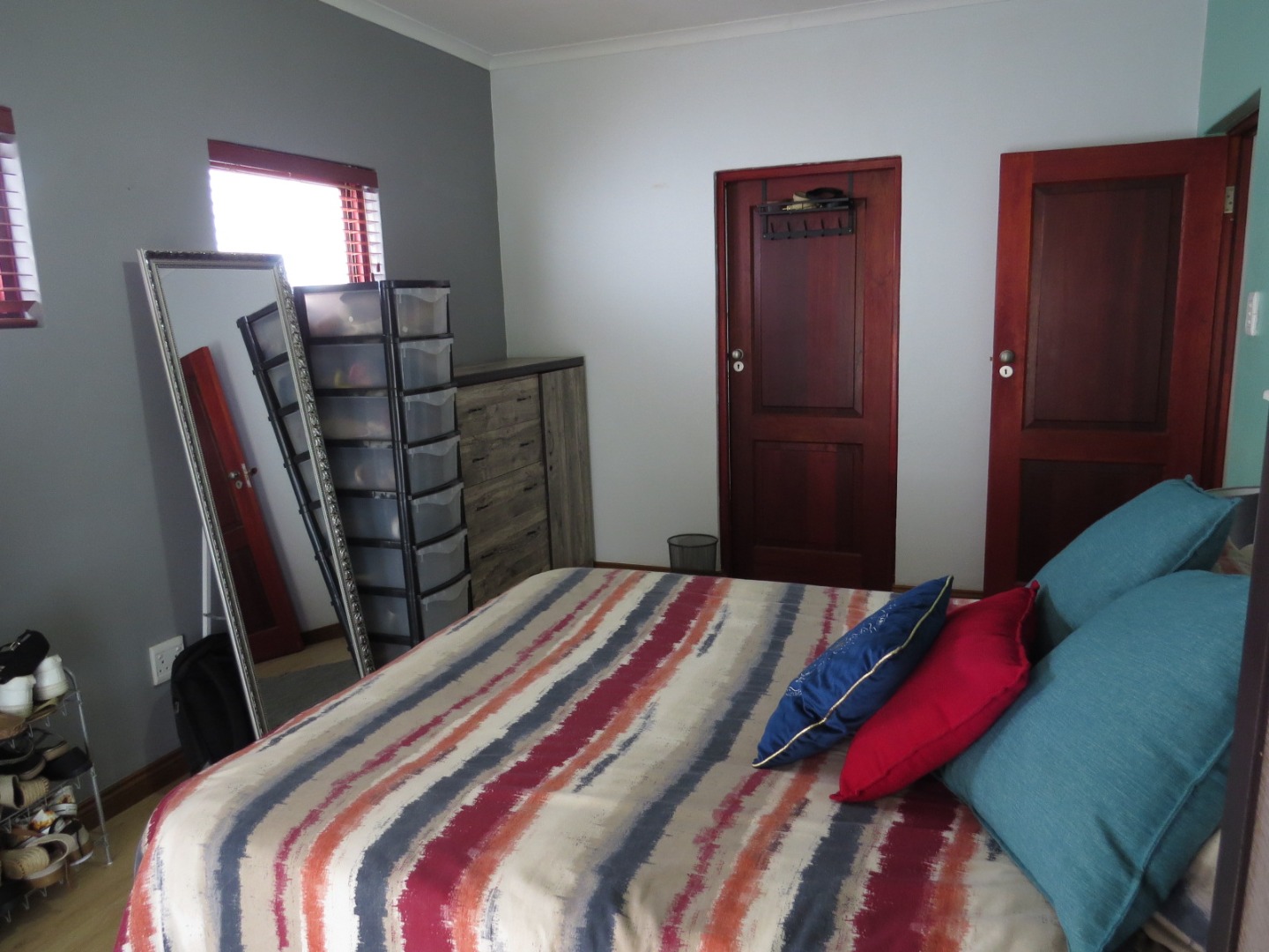 - One bedroom. No built in cupboard; Double door leading to patio and garden;