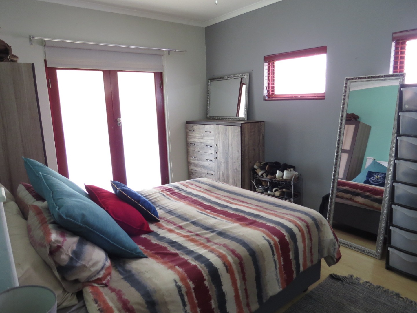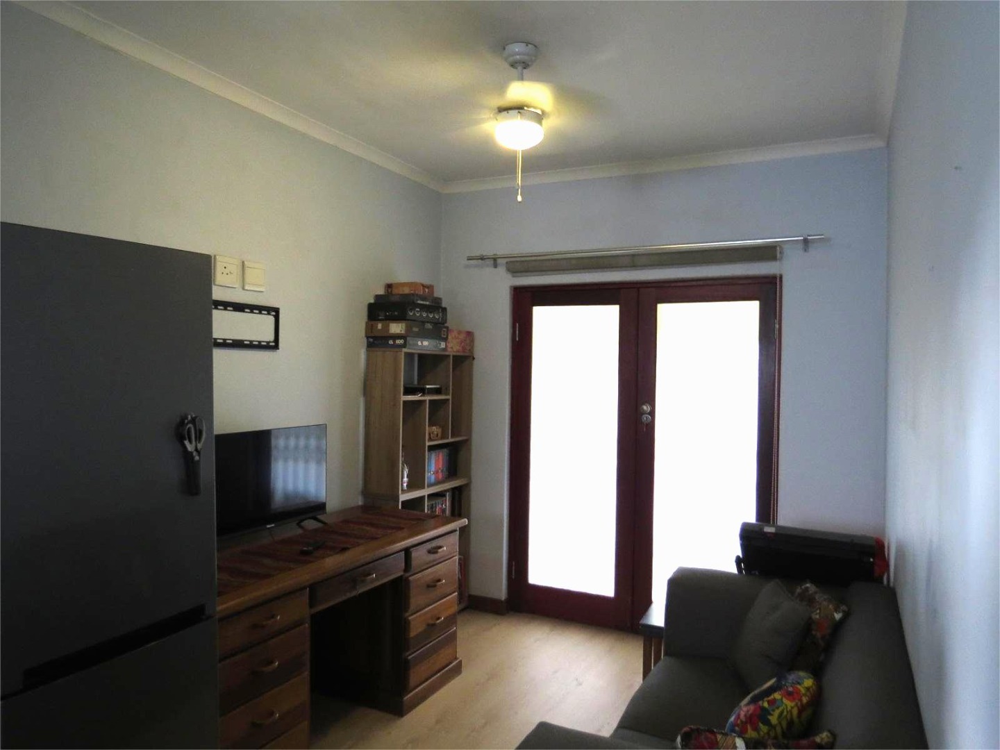 - One bedroom. No built in cupboard; Double door leading to patio and garden;