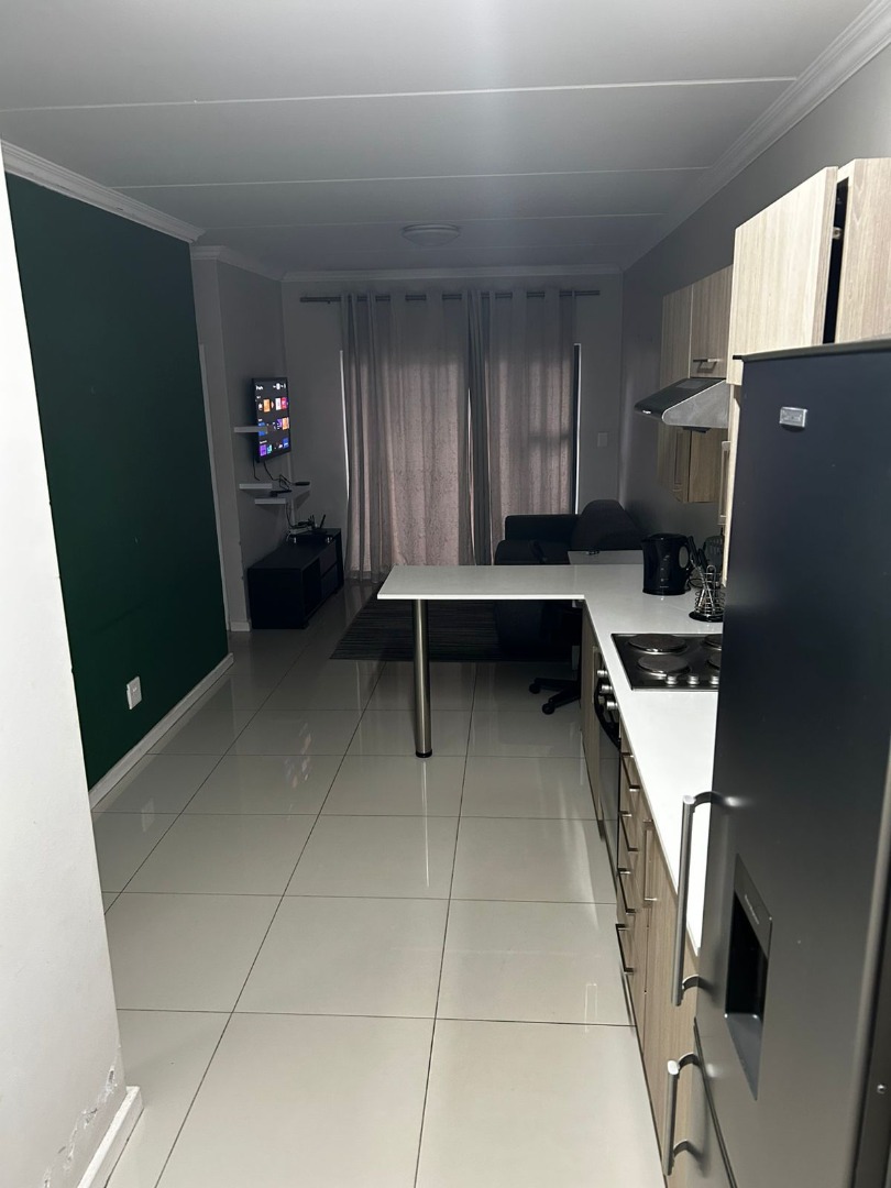 Discover modern living in this well-appointed 2-bedroom, 2-bathroom apartment located within a desirable estate in Halfway Gardens, Midrand. This contemporary unit offers an efficient open-plan layout, designed for comfort and convenience. The sleek, modern kitchen is equipped with integrated stainless steel appliances, including an oven, hob, extractor fan, and a washing machine. Light wood cabinetry, white countertops, and a stylish black marble-look backsplash complete this functional space, complemented by a versatile countertop extension for dining or a dedicated workspace. The open-plan living area boasts clean tiled flooring, a contemporary grey and white colour scheme, and a subtle accent wall, with natural light from a large window. Both bedrooms are neatly presented with tiled flooring and crown molding, offering comfortable private retreats. The two modern bathrooms feature walk-in showers, vessel sinks, and neutral tiling, ensuring a fresh and clean aesthetic. Ideal for professionals or those seeking a convenient lock-up-and-go lifestyle, this apartment prioritises practicality. Integrated appliances and a thoughtful layout maximise space, making daily living effortless. Two dedicated parking bays offer secure vehicle storage. Located within an estate, the property provides peace of mind. Halfway Gardens, in vibrant Midrand, offers excellent connectivity and access to major business nodes, shopping centres, and essential amenities, making it a sought-after residential area for commuters. Key Features: * 2 Bedrooms, 2 Bathrooms * Modern Open-Plan Living * Integrated Kitchen Appliances * Tiled Flooring Throughout * Dedicated Dining/Workspace * Two Parking Bays * Secure Estate Living * Prime Midrand Location