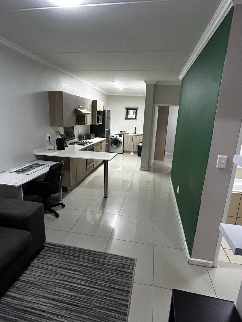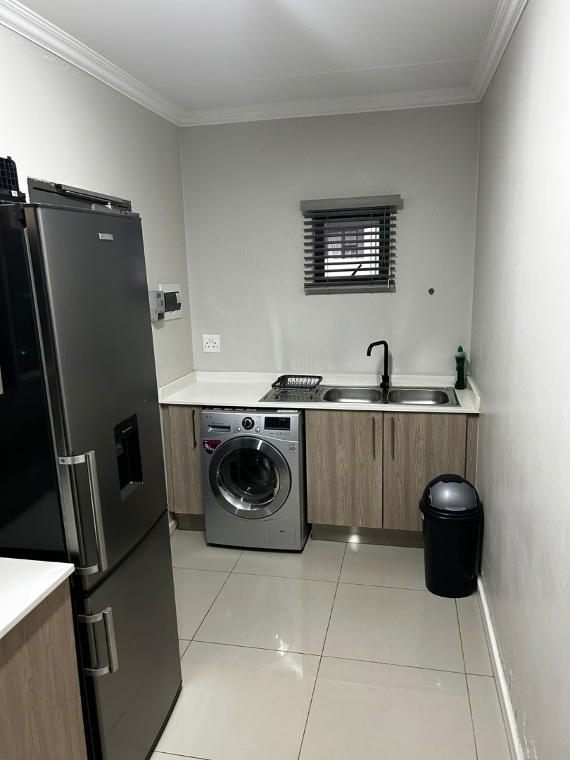 Discover modern living in this well-appointed 2-bedroom, 2-bathroom apartment located within a desirable estate in Halfway Gardens, Midrand. This contemporary unit offers an efficient open-plan layout, designed for comfort and convenience. The sleek, modern kitchen is equipped with integrated stainless steel appliances, including an oven, hob, extractor fan, and a washing machine. Light wood cabinetry, white countertops, and a stylish black marble-look backsplash complete this functional space, complemented by a versatile countertop extension for dining or a dedicated workspace. The open-plan living area boasts clean tiled flooring, a contemporary grey and white colour scheme, and a subtle accent wall, with natural light from a large window. Both bedrooms are neatly presented with tiled flooring and crown molding, offering comfortable private retreats. The two modern bathrooms feature walk-in showers, vessel sinks, and neutral tiling, ensuring a fresh and clean aesthetic. Ideal for professionals or those seeking a convenient lock-up-and-go lifestyle, this apartment prioritises practicality. Integrated appliances and a thoughtful layout maximise space, making daily living effortless. Two dedicated parking bays offer secure vehicle storage. Located within an estate, the property provides peace of mind. Halfway Gardens, in vibrant Midrand, offers excellent connectivity and access to major business nodes, shopping centres, and essential amenities, making it a sought-after residential area for commuters. Key Features: * 2 Bedrooms, 2 Bathrooms * Modern Open-Plan Living * Integrated Kitchen Appliances * Tiled Flooring Throughout * Dedicated Dining/Workspace * Two Parking Bays * Secure Estate Living * Prime Midrand Location