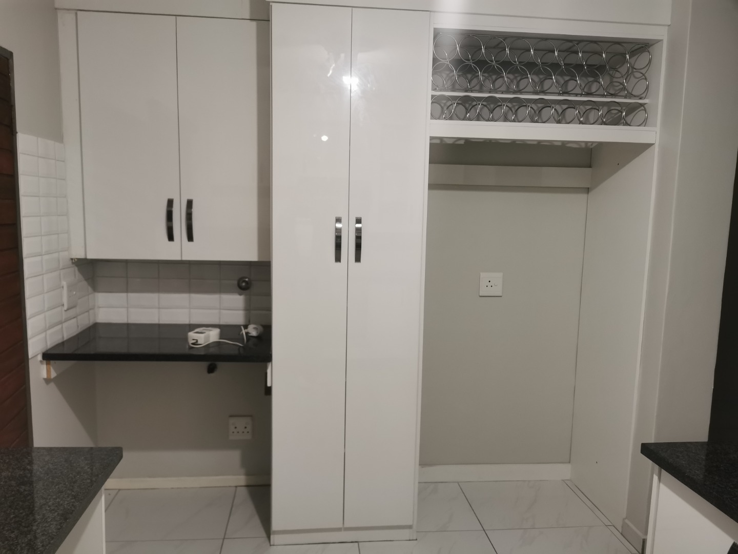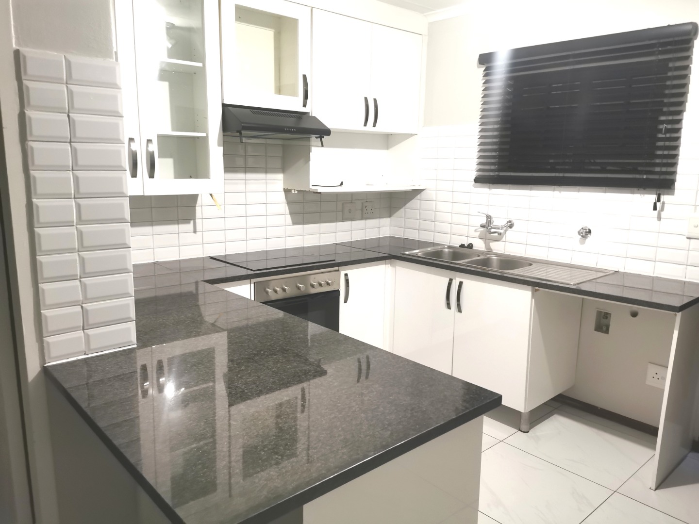 Presenting a meticulously appointed residential rental property spanning 95 square metres, ideally situated within a secure complex in Sagewood, Midrand. This contemporary residence comprises three well-proportioned bedrooms and two bathrooms, including a private en-suite, offering optimal comfort and privacy for its occupants. The interior boasts a modern aesthetic, featuring a dedicated lounge and a distinct dining room, providing ample space for both relaxation and formal entertaining. The heart of this home is its sophisticated kitchen, designed for both style and functionality. It showcases sleek white cabinetry complemented by dark granite countertops and a pristine white subway tile backsplash. Equipped with a built-in oven, extractor fan, and a double sink, the kitchen also benefits from an integrated wine rack and a dedicated alcove for a refrigerator, ensuring a seamless culinary experience. The property further includes two designated parking bays, enhancing convenience for residents. Externally, the property features durable red face-brick construction with modern dark grey accents, ensuring a low-maintenance facade. Security is paramount, with a robust security gate and window grilles providing peace of mind. The neatly paved walkways contribute to the property's well-maintained appearance, reflecting a commitment to quality living. This rental property represents a prudent choice for professionals or small families seeking a modern, secure, and conveniently located home in Midrand. Sagewood offers excellent connectivity to major arterial routes and essential amenities, making it a highly desirable residential node within South Africa's dynamic economic hub. Key Features: * Three Bedrooms, Two Bathrooms (One En-suite) * Modern Kitchen with Granite Countertops and Built-in Oven * Dedicated Lounge and Dining Room * 95 sqm Floor Size * Two Parking Bays * Secure Complex Living with Security Gate and Window Grilles * Durable Face-Brick Exterior * Contemporary Finishes Throughout