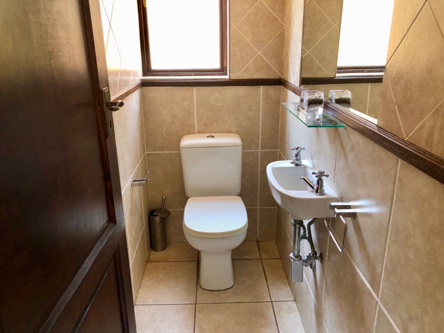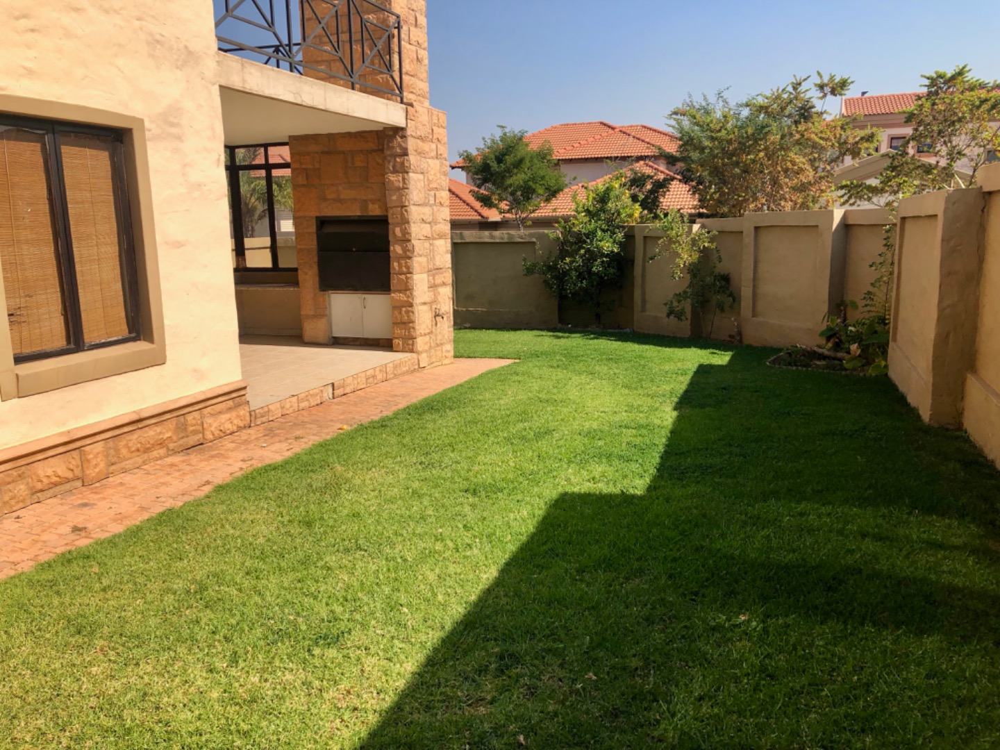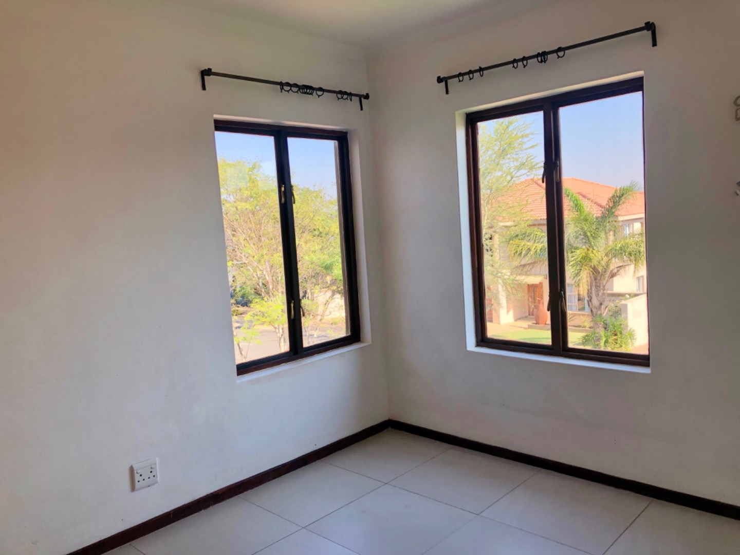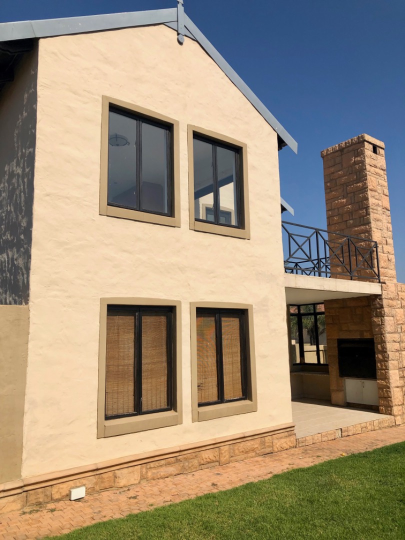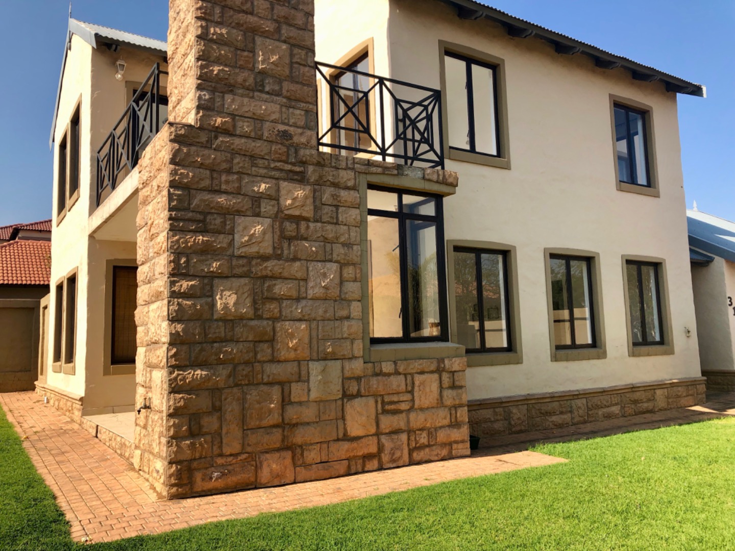 Discover this charming and spacious 3-bedroom, 2.5-bathroom home available for rent in a secure estate in Bronberg. Designed for comfortable living, this residence boasts an inviting open-plan layout, seamlessly connecting the lounge, dining room and kitchen. The contemporary kitchen is a highlight, featuring sleek wood-look cabinetry, light countertops, integrated hob, oven, and extractor fan, complemented by a convenient breakfast bar and a separate scullery area. Tiled flooring and neutral white walls throughout provide a versatile canvas for your personal style, while air conditioning ensures year-round comfort.