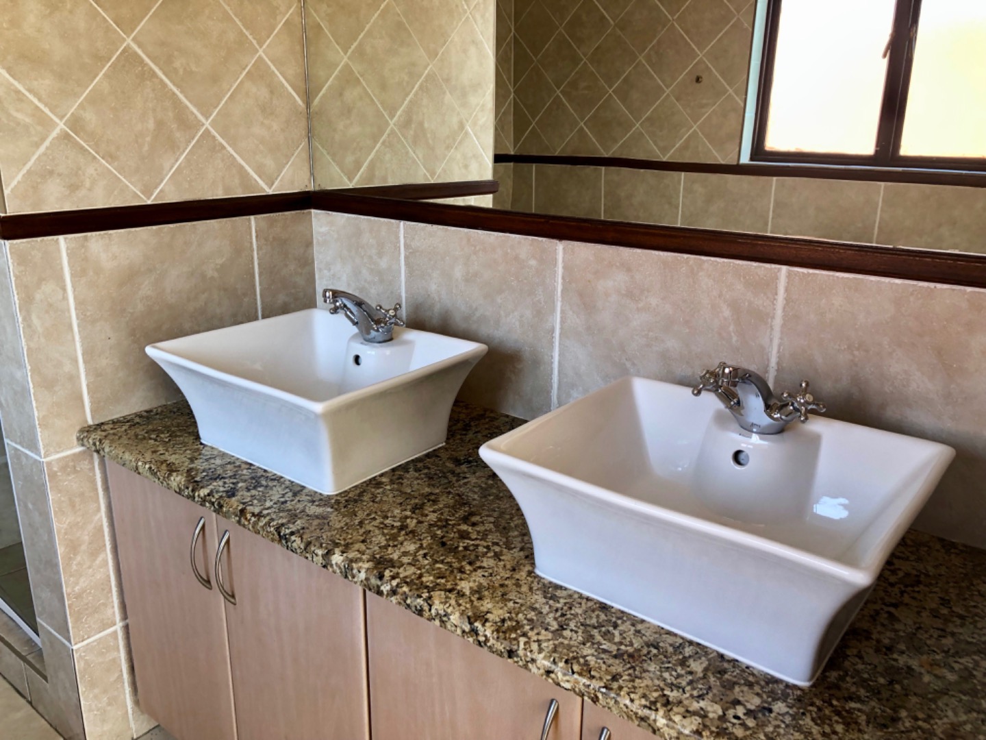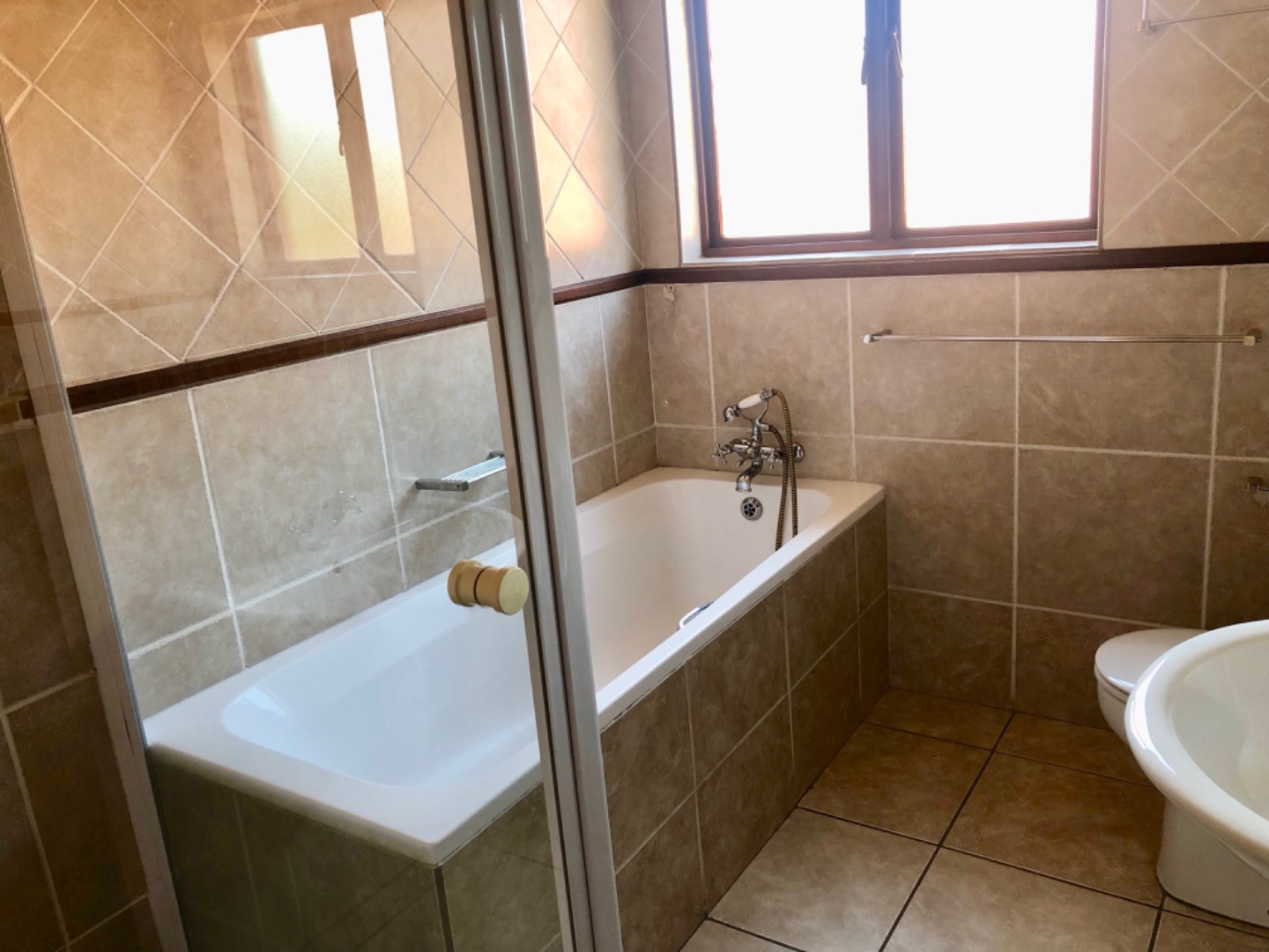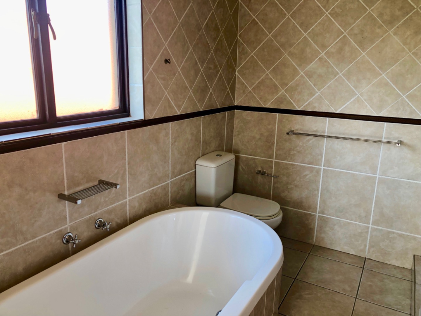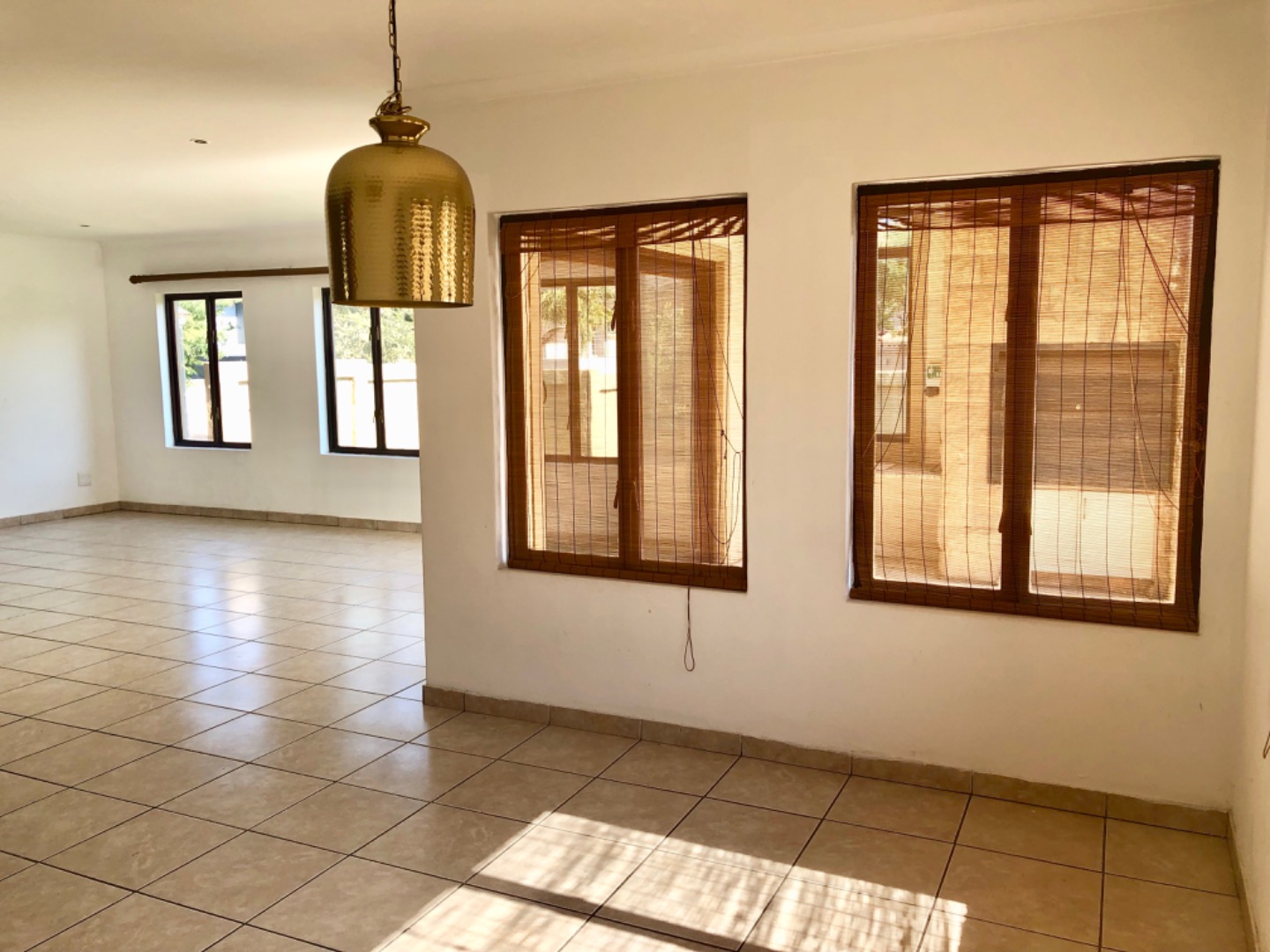 Discover this charming and spacious 3-bedroom, 2.5-bathroom home available for rent in a secure estate in Bronberg. Designed for comfortable living, this residence boasts an inviting open-plan layout, seamlessly connecting the lounge, dining room and kitchen. The contemporary kitchen is a highlight, featuring sleek wood-look cabinetry, light countertops, integrated hob, oven, and extractor fan, complemented by a convenient breakfast bar and a separate scullery area. Tiled flooring and neutral white walls throughout provide a versatile canvas for your personal style, while air conditioning ensures year-round comfort.