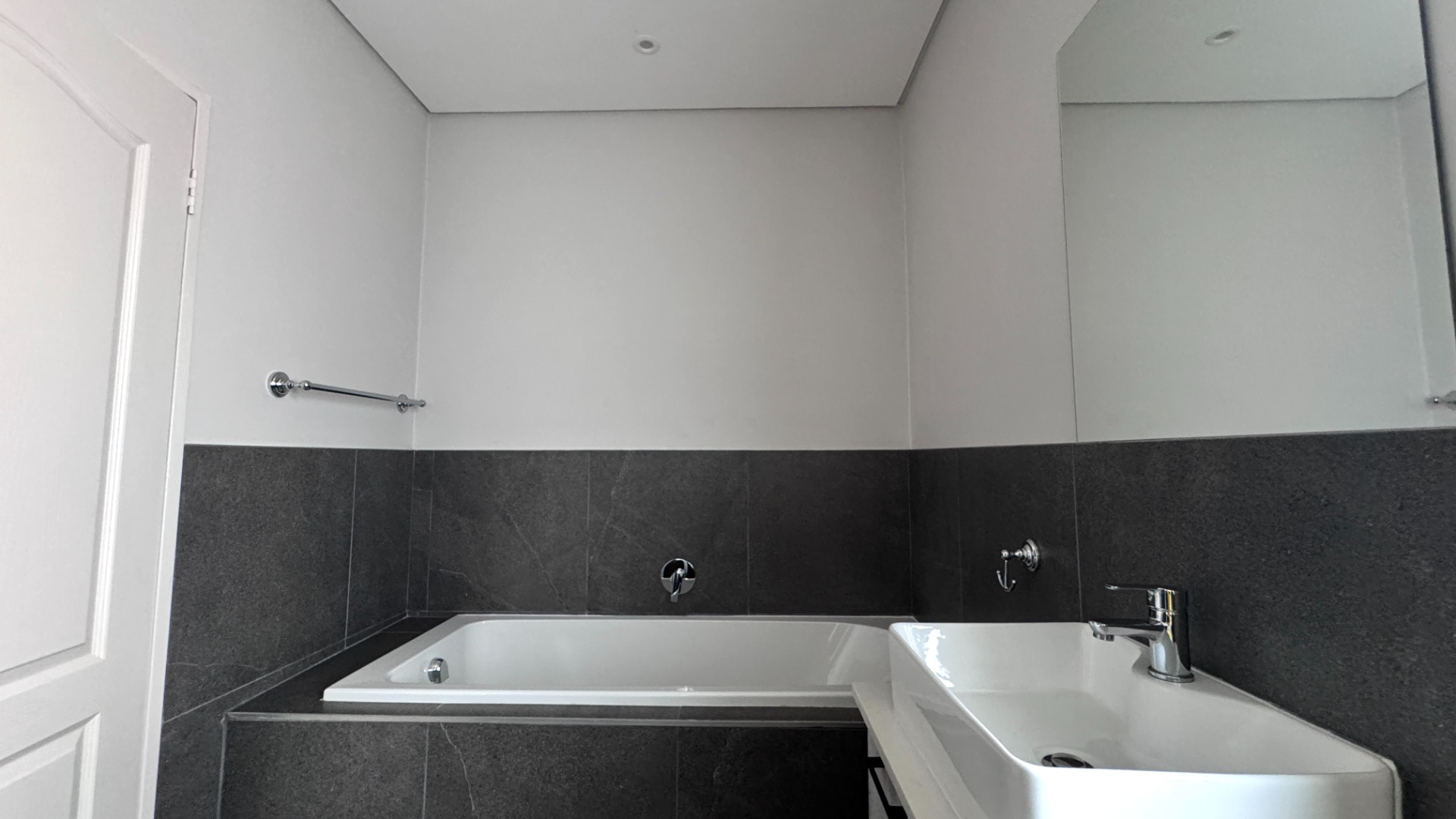 Both bedrooms are designed for comfort, offering ample space and a clean aesthetic, complemented by the single modern bathroom. The entire apartment features contemporary finishes, including moderm large format floor tiles and special lighting throughout, creating a sophisticated ambiance. With one dedicated parking bay, convenience is assured.