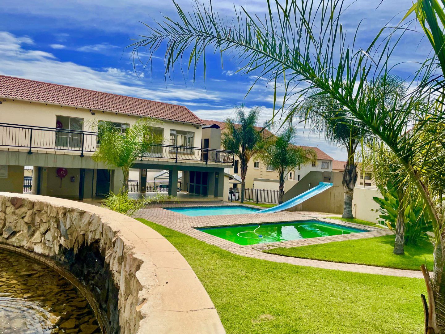 Enjoy a lifestyle of convenience and leisure within this vibrant security complex. Residents benefit from access to resort-like communal amenities, including two swimming pools, one with an exciting waterslide, and expansive green lawns perfect for relaxation. A dedicated children's playground and attractive water features enhance the family-friendly environment, making it suitable for professionals or families seeking an amenity-rich home. The apartment also includes a private balcony, offering an outdoor retreat and additional living space.