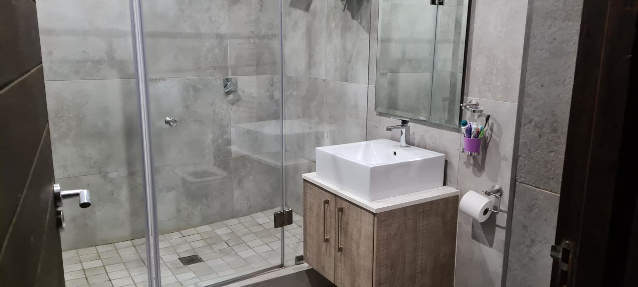 This contemporary 3-bedroom, 2-bathroom ground floor rental property offers a sophisticated living experience in the sought-after Menlo Park suburb of Pretoria. The residence features a spacious open-plan layout seamlessly connecting the lounge, dining area and a modern kitchen. The kitchen is well-appointed with stylish two-tone cabinetry, a subway tile backsplash, integrated appliances being a dishwasher and washing machine, Throughout the home, you'll find sleek tiled flooring, abundant natural light, recessed lighting, and air conditioning units for optimal comfort. Bedrooms are equipped with generous built-in wardrobes, providing ample storage.