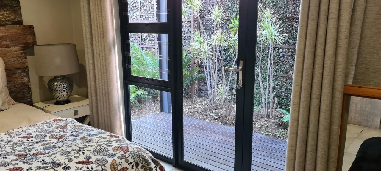 Designed for a modern lifestyle, this property boasts large glass doors that provide direct access to a charming private patio area with decking. This creates an ideal setting for relaxation or entertaining. The multi-unit complex itself is nestled amidst mature greenery and well-maintained landscaped gardens, offering communal outdoor spaces for residents.