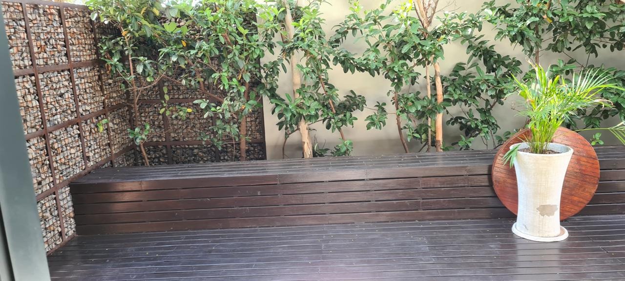 Designed for a modern lifestyle, this property boasts large glass doors that provide direct access to a charming private patio area with decking. This creates an ideal setting for relaxation or entertaining. The multi-unit complex itself is nestled amidst mature greenery and well-maintained landscaped gardens, offering communal outdoor spaces for residents.