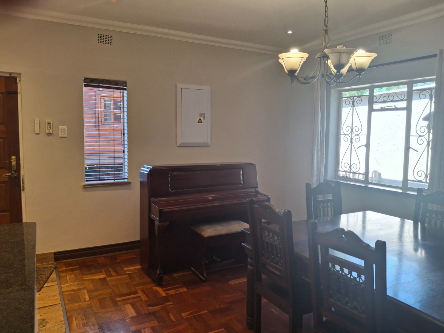 Discover this inviting family home available for rent in the established suburban area of Queenswood, Pretoria. Boasting a generous 200 sqm floor size on a 600 sqm erf, this residence offers comfortable living with three well-proportioned bedrooms and two bathrooms, including a convenient en-suite. The interior features elegant parquet flooring throughout the main living areas, which comprise two spacious lounges, a dedicated dining room, and an additional family TV room, providing ample space for relaxation and entertainment.